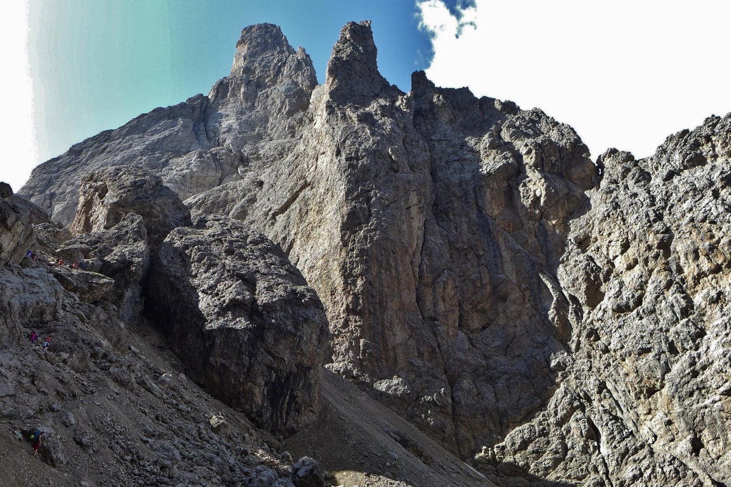 Auf der Brennerautobahn nach Klausen und dort weiter nach Gröden. Von dort hinauf auf den Sella Pass - westlich unterhalb des Sellapasses bei der Seilbahn zur Langkofelscharte parken. Öffis: Mit der Bahn nach Klausen und mit dem Bus bis zur Talstation der Seilbahn zur Langkofelscharte. Gebührenpflichtiger Parkplatz am Sellajoch Mountain Resort.