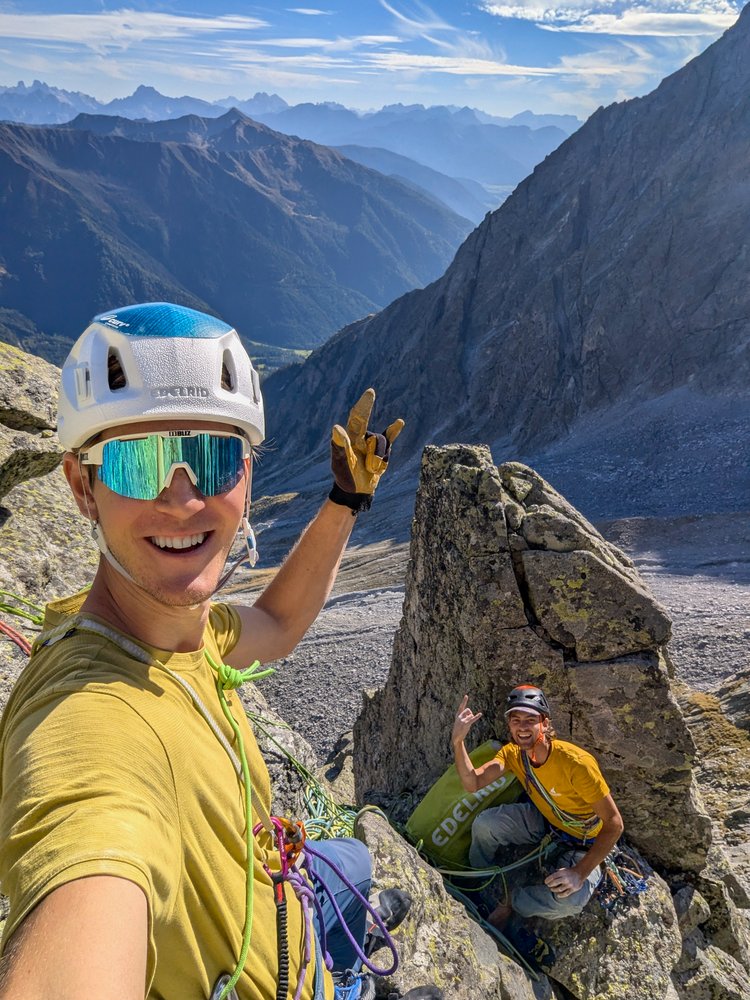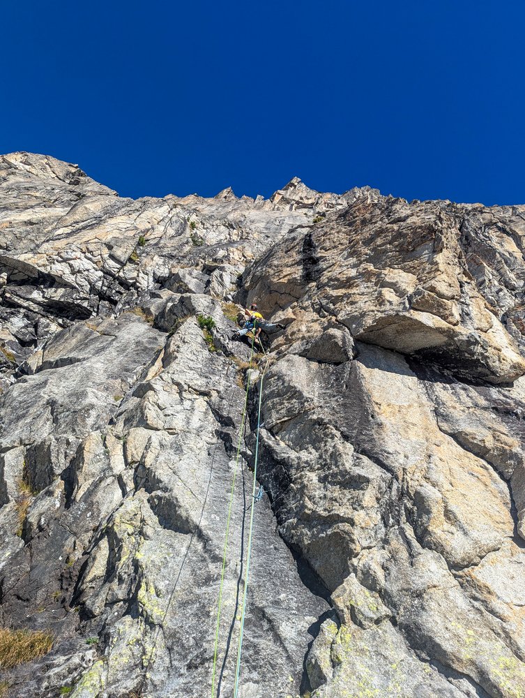 13 Zwischenhaken und einige gefädelte Sanduhren wurden belassen. Zusammen mit genügend Friends lässt sich die Tour super absichern. Die meist angenehmen Standplätze sind mit Normalhaken, viele davon vom AVS-Alpinfonds, eingerichtet.