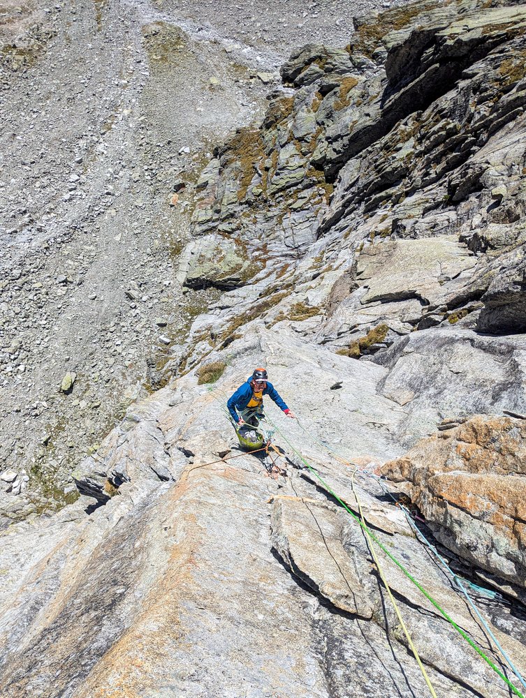 Elegante, bohrhakenfreie Linie durch die Südwand der Durrerspitze. Abwechslungsreiche Riss- und Plattenkletterei an bestem Rieserferner Tonalit. Man klettert entlang einiger toller Felsformationen, darunter ein ästhetisches Dach und ein Zick Zack Riss.