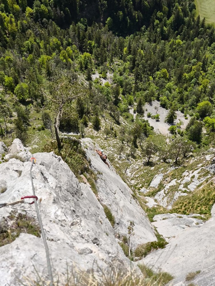 6. Seillänge 7b+; 40m; 17 Bohrhaken