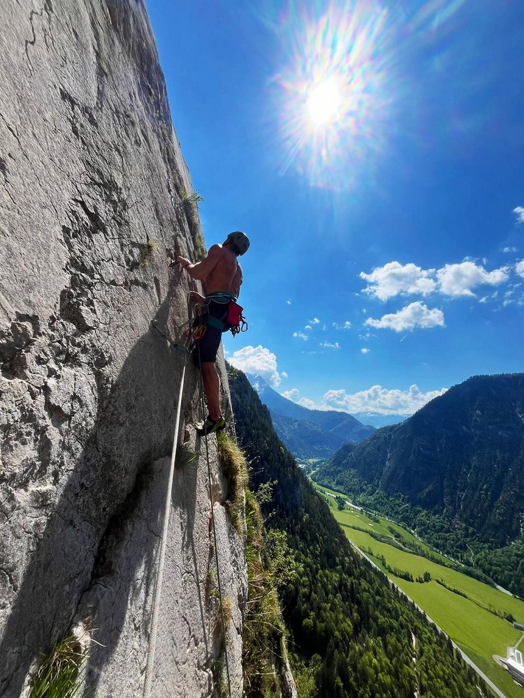 Über die Route abseilen und über Zustiegsweg zurück. (Abstiegszeit ohne abseilen!)