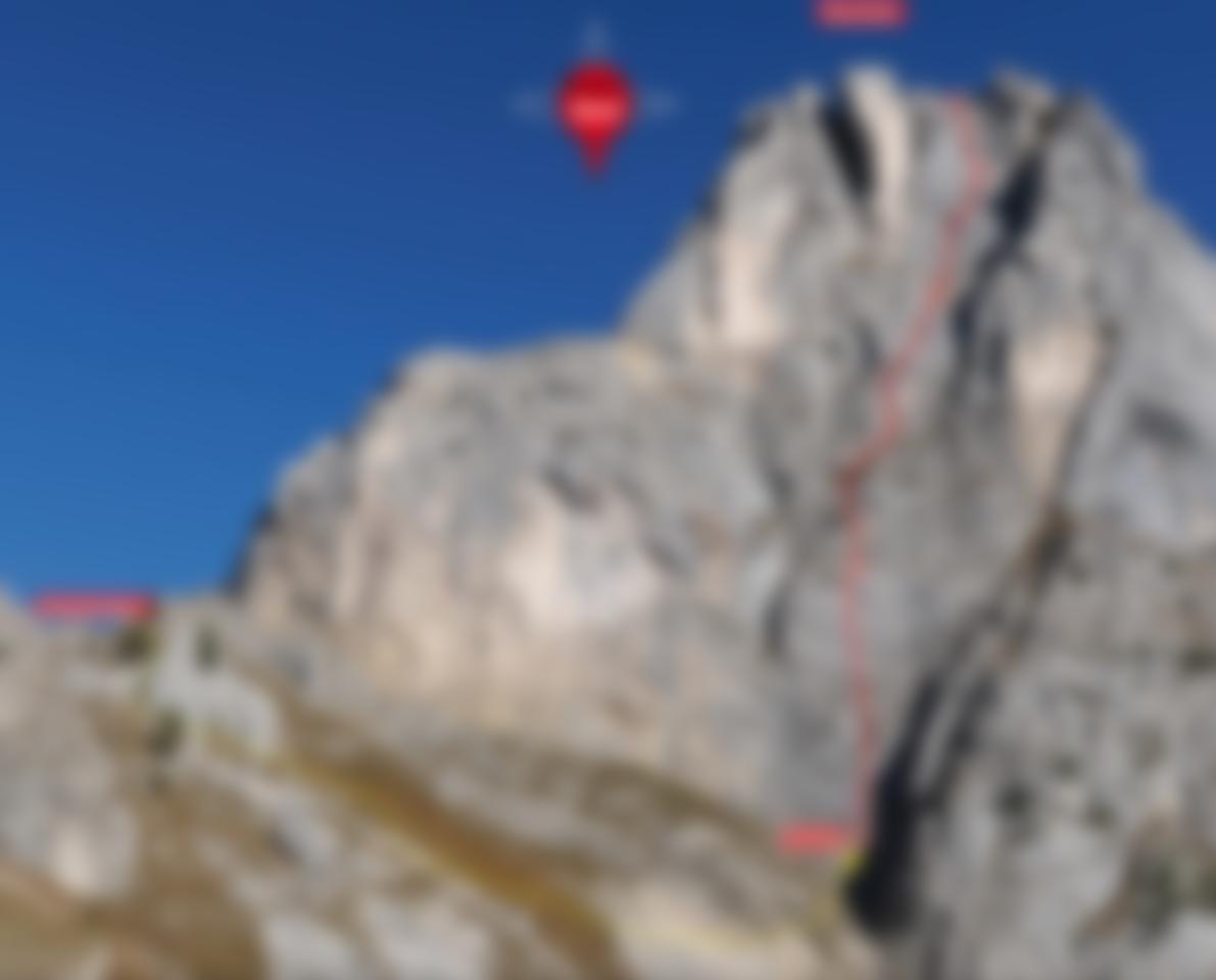 1. SL: Erst steil gerade hinauf (6-, BH schlecht erkennbar), über kleinen Überhang (6+) und leicht linkshaltend über leichteres Gelände (3) zum Fuß einer Plattenwand in Falllinie einer größeren Latsche. Zwischenstand an zwei BH möglich (ca. 25 m). Dann über einen Riss durch die Platten immer schwieriger bis zur Latsche (6), rechts vorbei und zum Stand an 2 BH auf kleinem Absatz. (50 m, 10 ZH, 6+)
