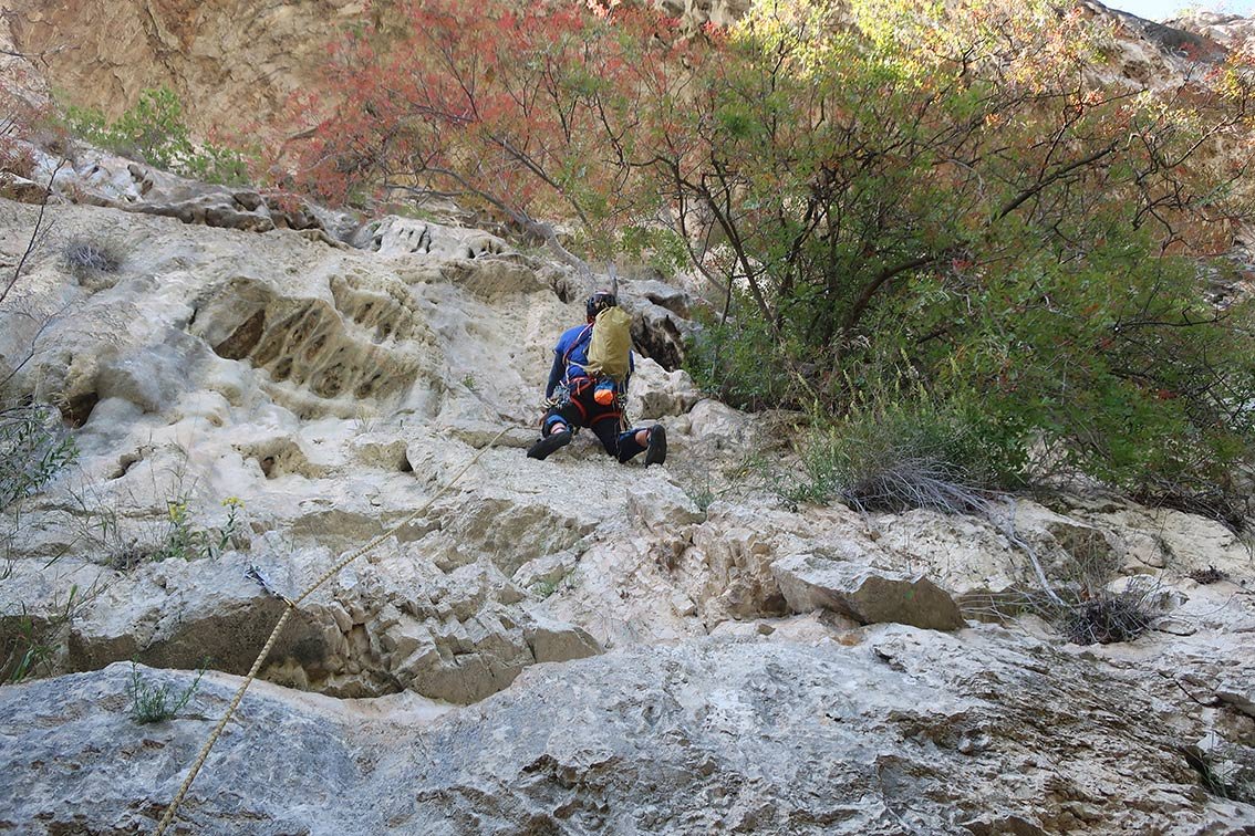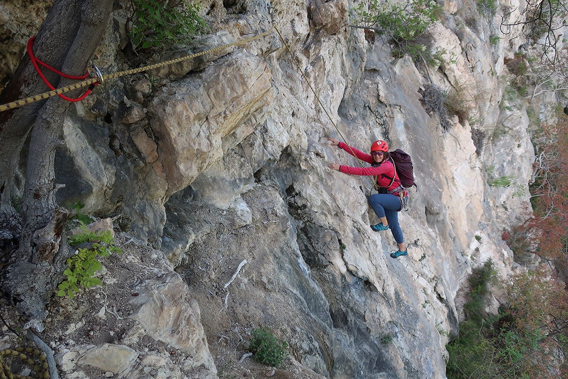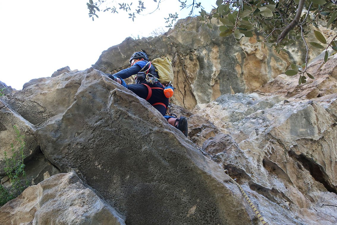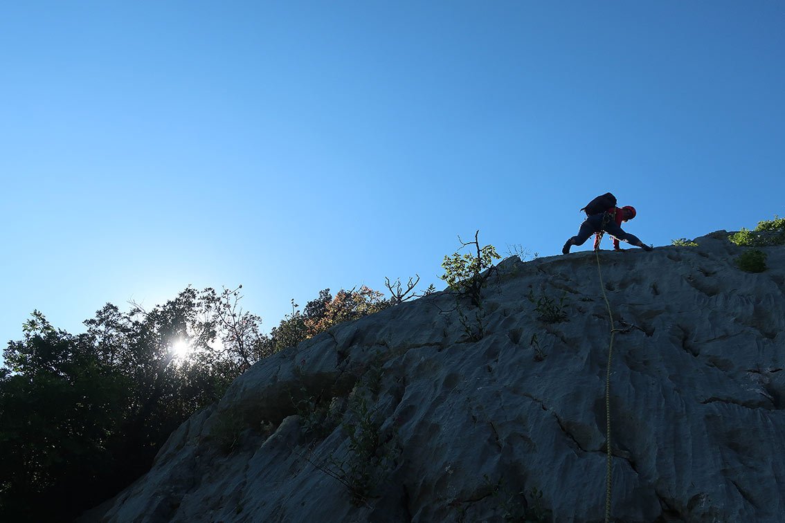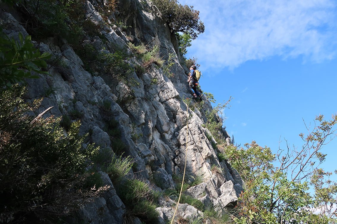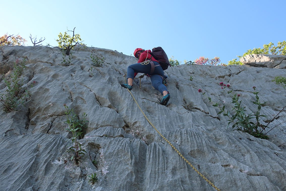 In der ersten Seillänge beim 4ten Bohrhaken auf dem leichten Band scharf nach links (nicht gerade hinauf).