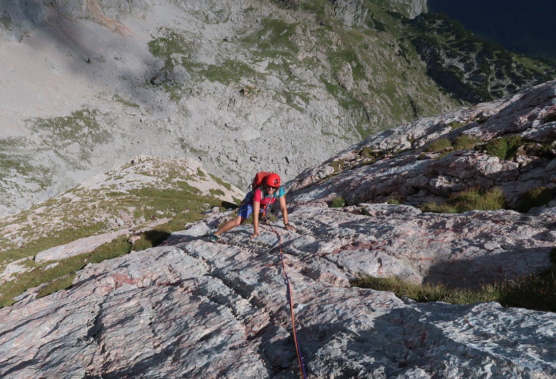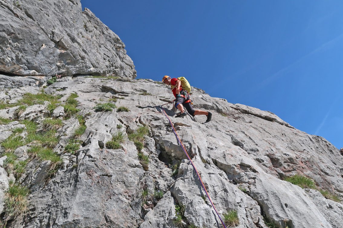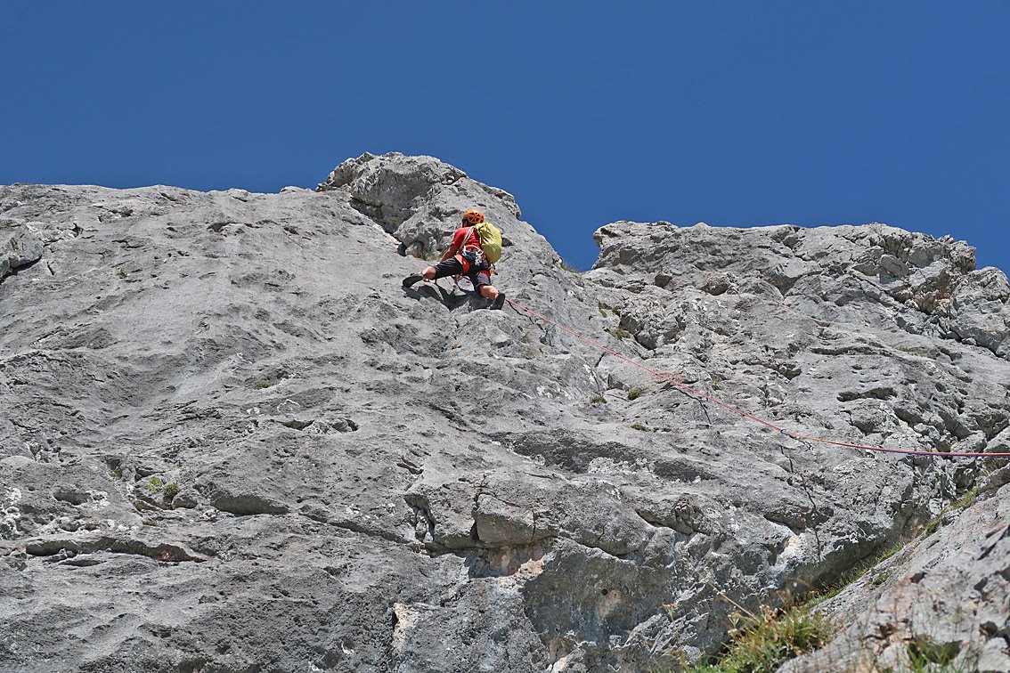 Keine Plaisirkletterei. Die leichten Seillängen sind weiter gesichert. Für den Abstieg sollte man schon etwas Erfahrung beim Abseilen haben.