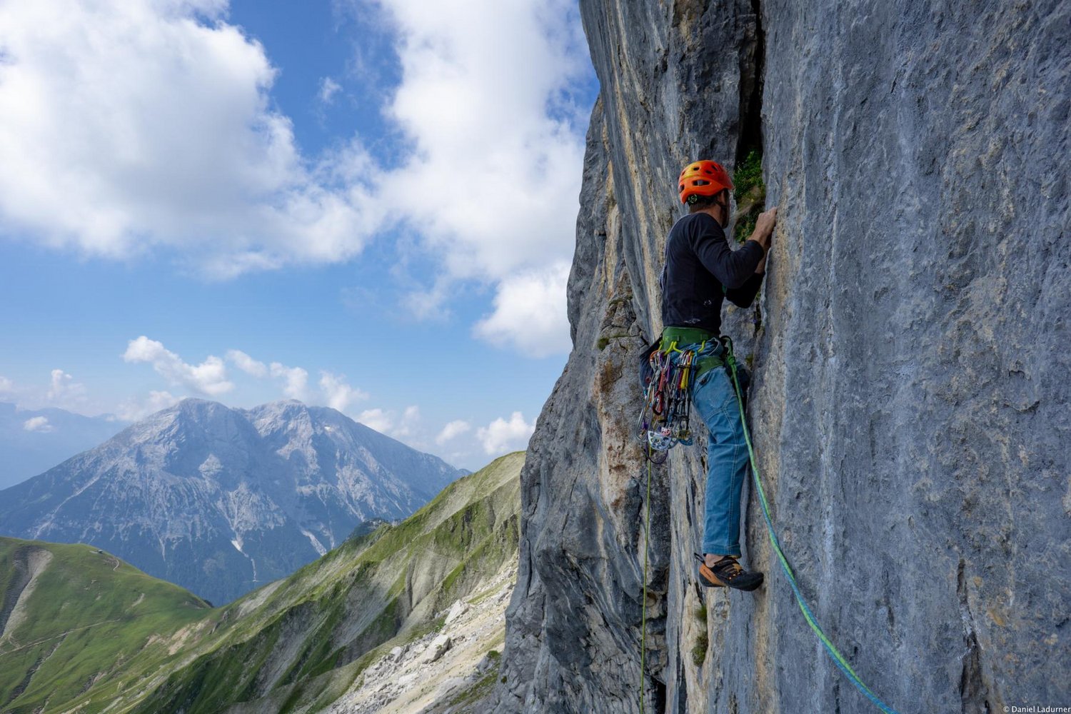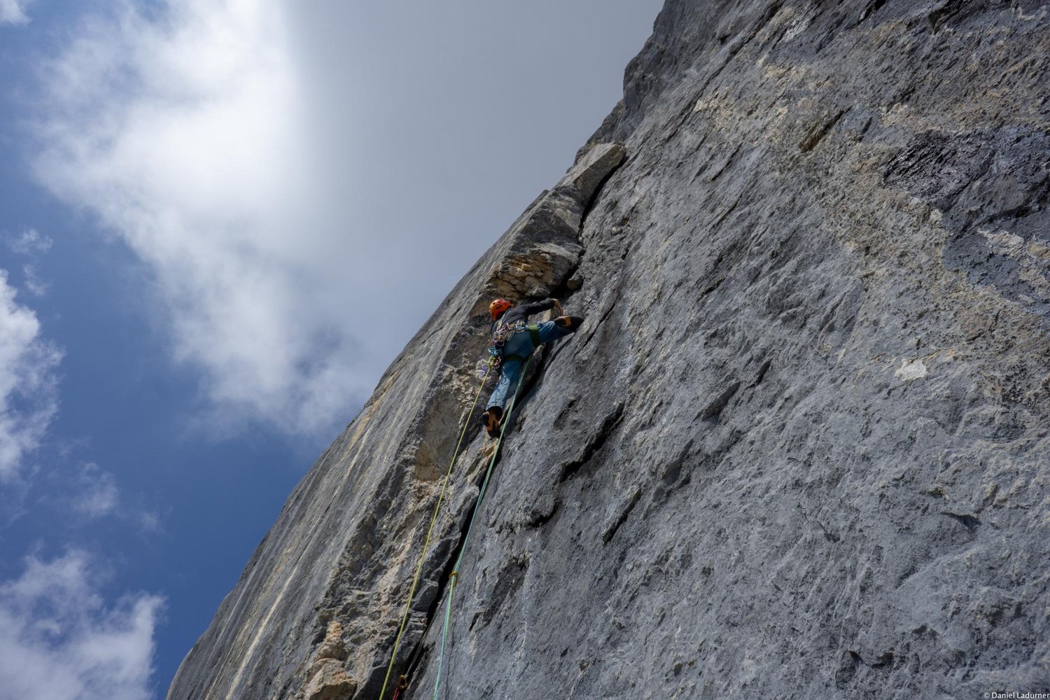 Bis auf die Risse, 5. SL und 3. SL sehr gut mit Bolts und NHs gesichert.