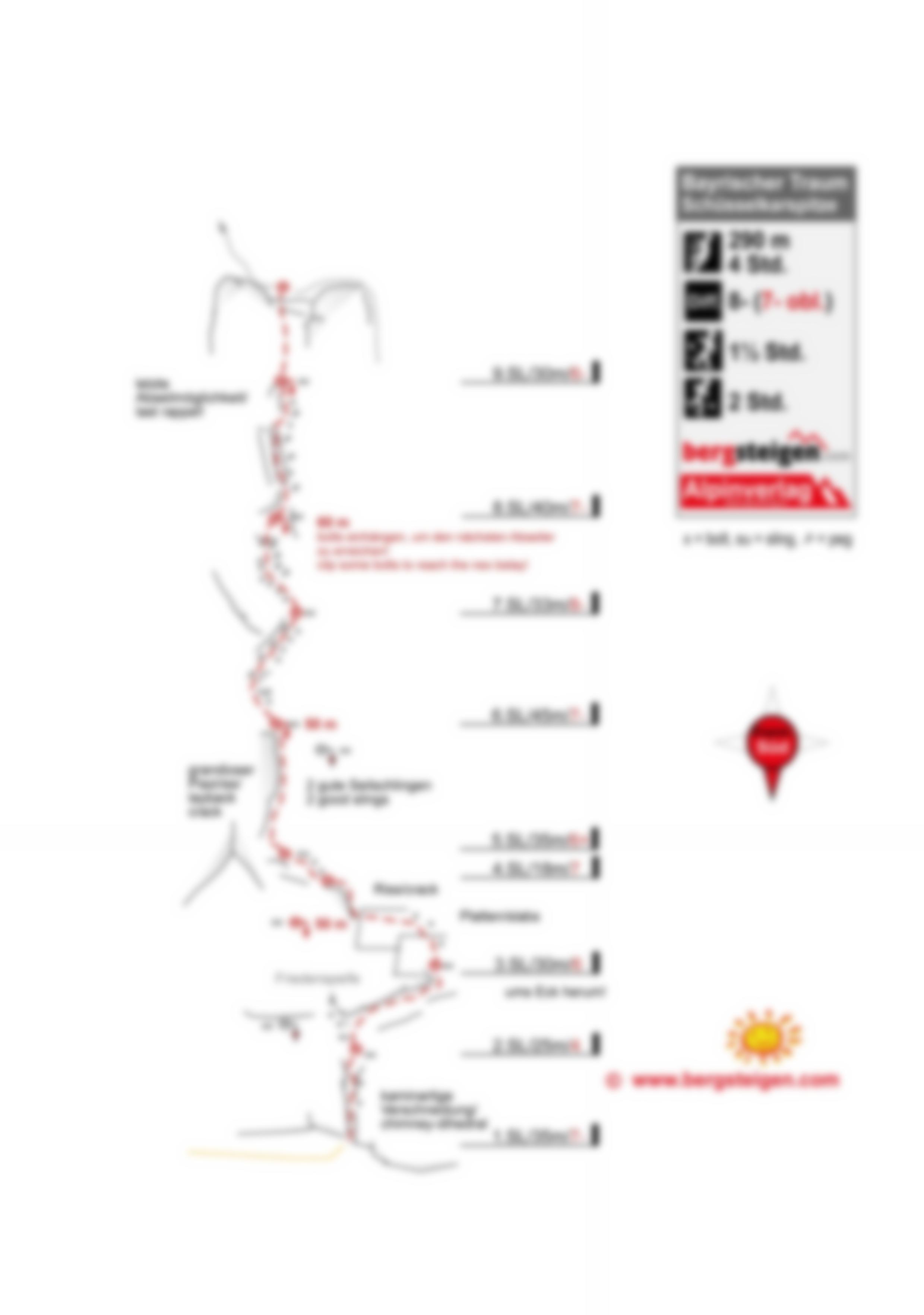 Man kann am Ende des Bayrischen Traums auch abseilen, aber das ist nicht trivial und es gab schon mehrere Bergungen, weil die Abseilstände nicht gefunden wurden. Unbedingt beim Abseilen Expressen einhängen!!