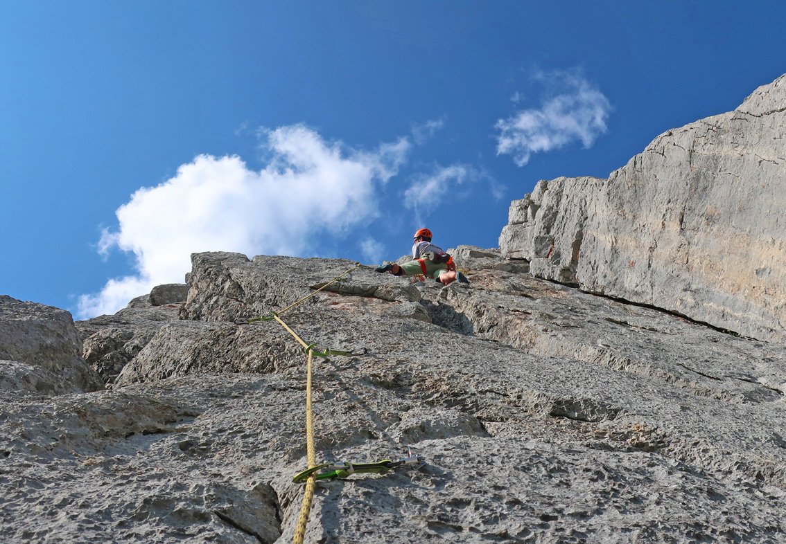 Gut mit Bohrhaken abgesichert. An den Ständen befinden sich jeweils zwei Sicherungspunkte.