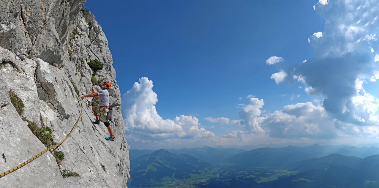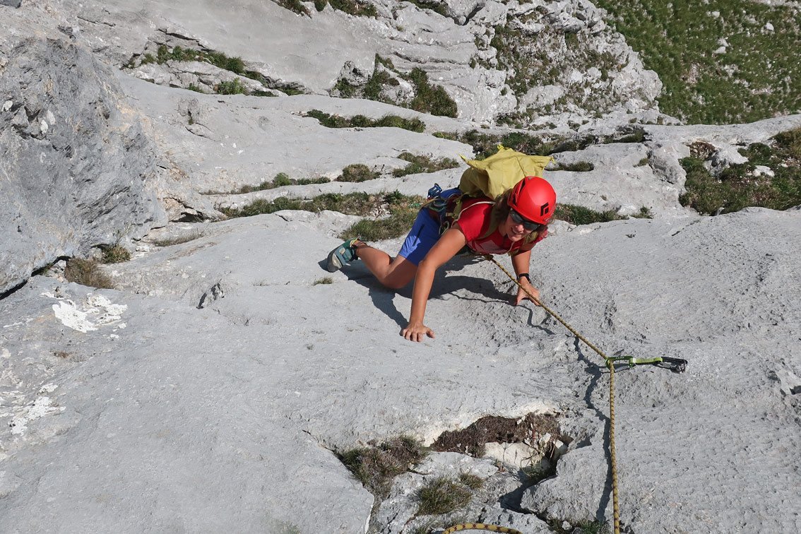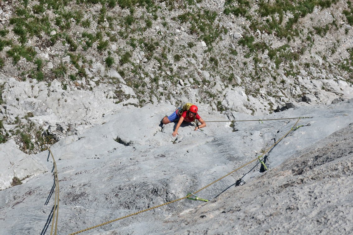 Einfachseil 50 m, 10 Expressschlingen, Bandschlingen und Helm.