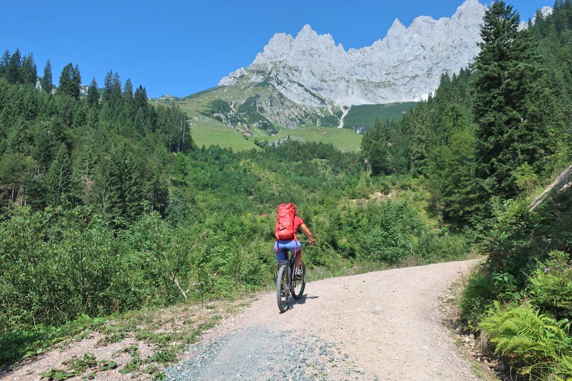Alternativ kann man von Parma (oberhalb des Stanglwirts) mit dem Bike (E-Bike) bis zur Regalm hinauf fahren. Dort dann links zum Brennenden Palfen (Bergsteigergrab) und weiter wie oben beschrieben zum Ausgangspunkt.