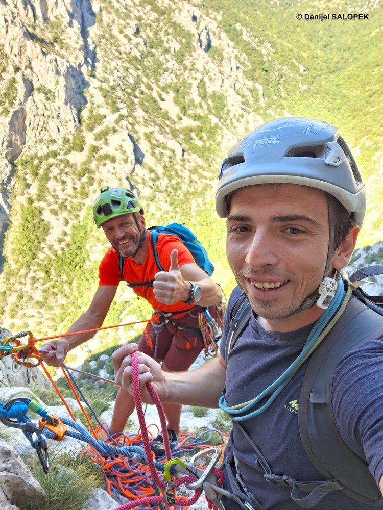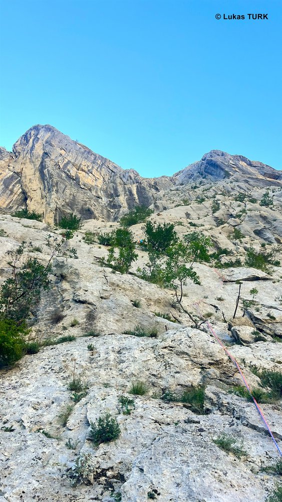 Eine interessante neue Tour durch den Sektor „Trapez“ des Anica Kuk vom kongenialen Duo Cujic/ Matkovic. Die Route beginnt rechts der Mosoraski, quert diese im oberen Mittelteil und endet links davon. Konstante Schwierigkeiten und eine sehr gute Absicherung machen die Mitnahme von friends überflüssig. Traumhafte Seillängen im oberen Teil!