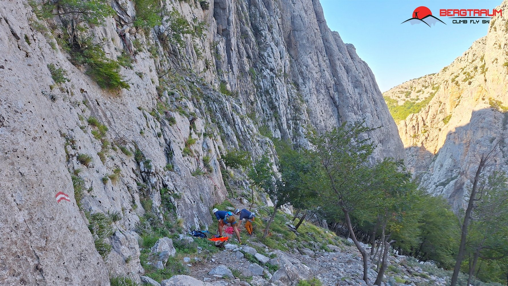 Vom Parkplatz des Nationalpark Parklenica/Velebit auf dem Wanderweg in die Schlucht. Nach rd. 15 Minuten bei einer markanten Linkskehre, zweigt ein beschilderter Weg nach rechts zum Anica Kuk ab. Diesem folgt man noch ca. 100 Meter. Bei der folgenden Abzweigung gelangt man rechts zum Sektor Stup und links zu den Sektoren Trapez, Klin, und der NW sowie N-Wand. Hier links weiter. Der Einstieg befindet sich in Nähe der Mosoraski in der Zone des letzten großen Felssturzes gleich neben dem Weg.