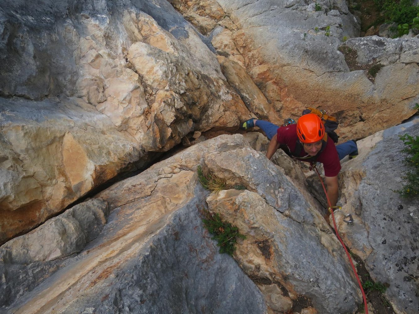 Eine Stelle 6+, in der 2. SL kann man die rechte, neue Variante 6+/7- klettern