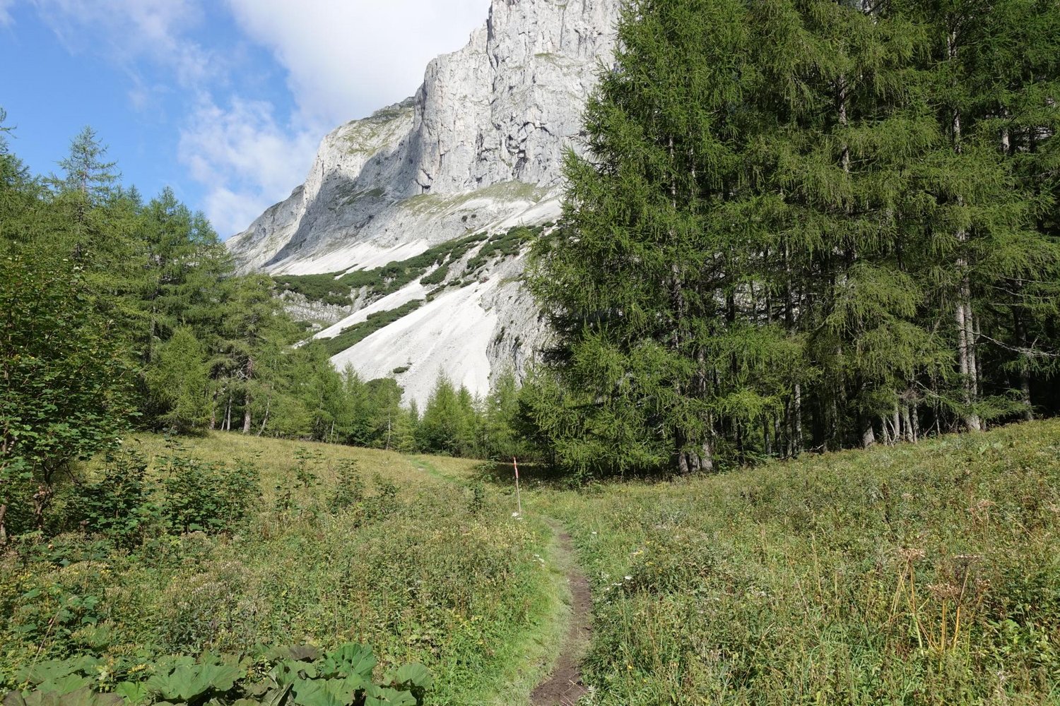 Vom Ausstieg aufsteigen und nach norden zum Wanderweg gehen. Auf diesem nach Osten auf dem Hochplateau bis zum Abzweiger (großer Steinmann) ins steile Bruchtal. Hier rechts nach Seewiesen absteigen.