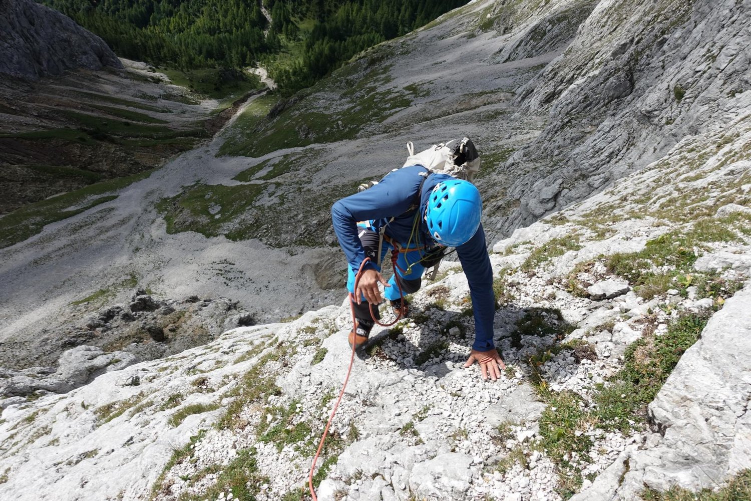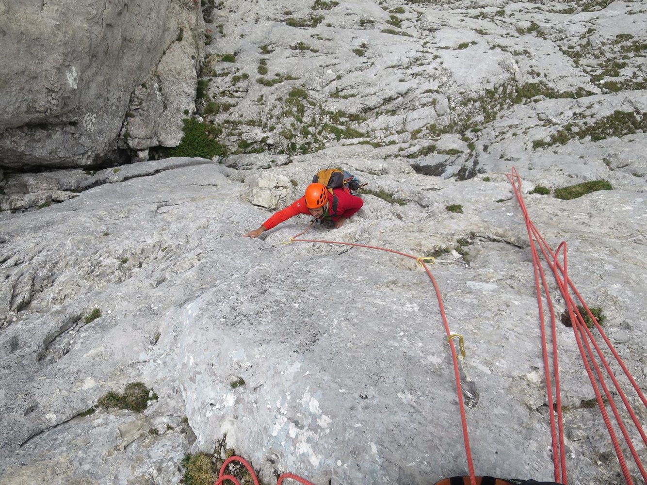 Lange und trotz der an den schwierigen Stellen guten Bohrhakenabsicherung aufgrund des verbreitet brüchigen Felses alpine Route. In der fünften Seillänge wartet eine wunderschöne Platte und die steile Schlüsselseillänge löst sich sensationell gut auf. Insgesamt ein lohnendes alpines Hochschwab-Abenteuer.
