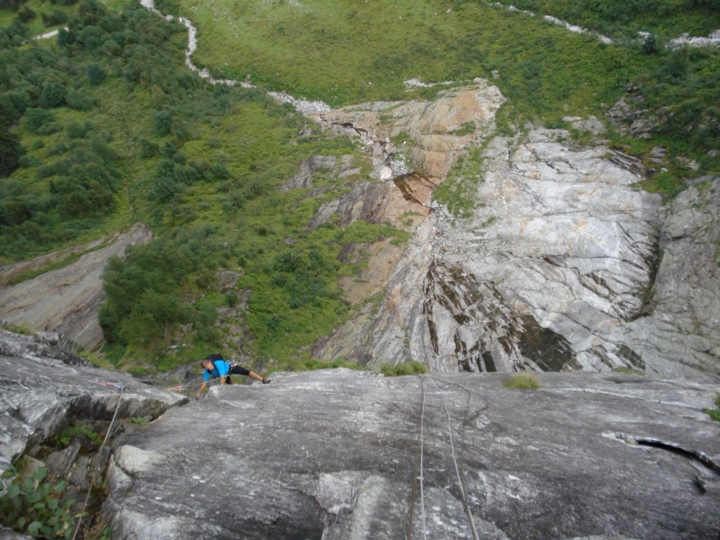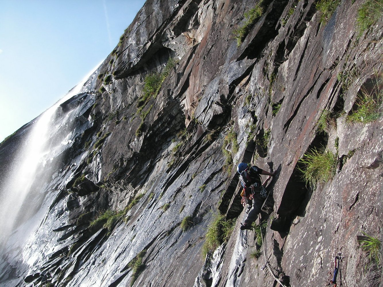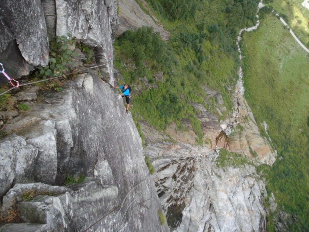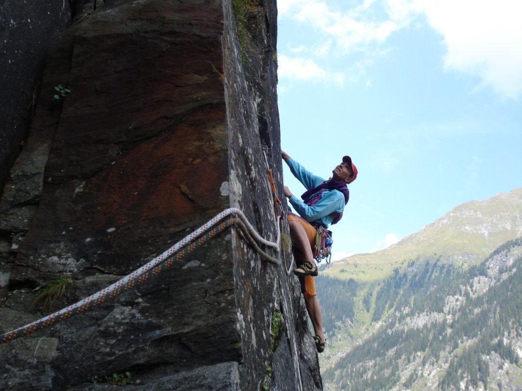 Ein Klassiker unter den mit Bohrhaken abgesicherten Granitrouten im Zillertal. Die lange Tour hat leider zwei etwas sandige Seillängen (Bezeichnung auf dem Topo, zweimal „Kärcherlänge“), dort ist Abenteuerlust gefragt. Der Erstbegeher hat tatsächlich gute Arbeit geleistet, um die Route überhaupt in diesen Zustand zu bringen. Man klettert an Granitplatten direkt neben dem Wasserfall - ein tolles Ambiente. Landschaftlich sehr schöne Tour, die sicher in dieser Schwierigkeit und Absicherung zu den längsten im Zillertal gehört.