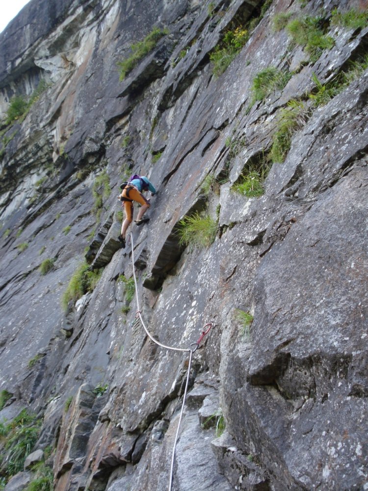 Die erdigen Seillängen (Kärcherlängen) erfordern einen sicheren Vorsteiger.