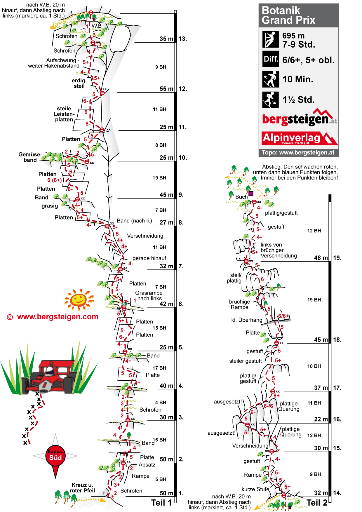 Wer Teil 1 und 2 klettert, sollte eine gute Kondition haben und ausreichend Flüssigkeit mitnehmen!! Auf trockene Verhältnisse achten. Wenn Seilschaften in der Tour sind, besteht Steinschlaggefahr! Unbedingt Helm aufsetzen!
