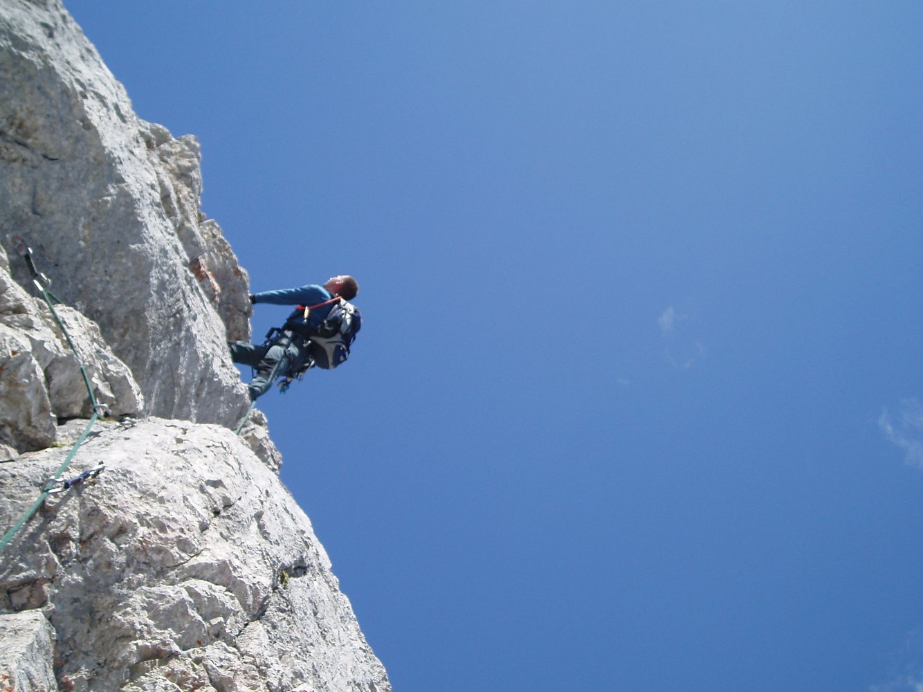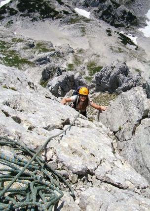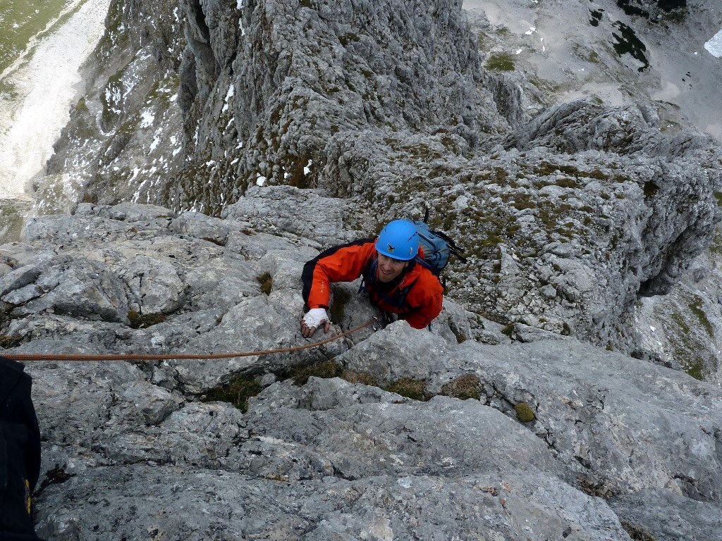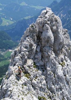 Teilweise etwas luftige Gratkletterei in überwiegend festem Fels. Trotz der Sanierung mit Bohr- bzw. Klebehaken eine recht alpine Tour. Auch der Abstieg über Schuttbedeckte Bänder ist eher alpin und setzt Trittsicherheit und ein gewisses Maß an alpiner Erfahrung voraus. Die Route bietet schöne Aus- und Tiefblicke!
