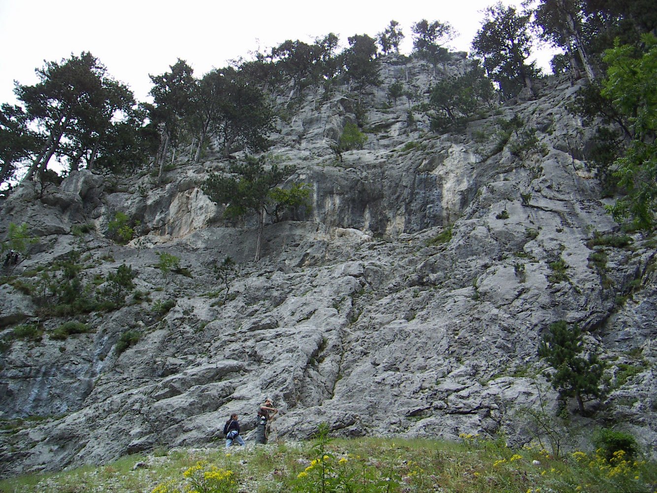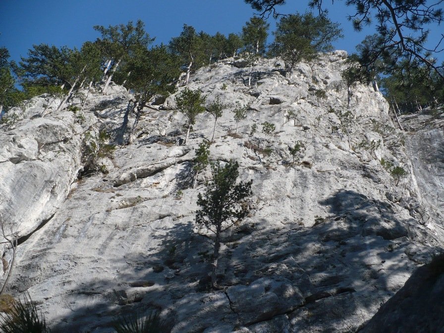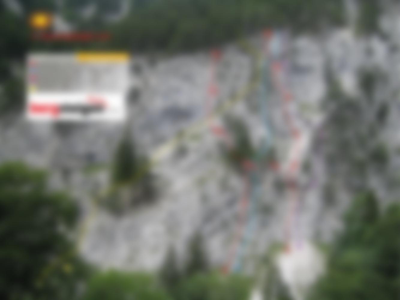 Vom Parkplatz dem Weg in den Stadelwandgraben ca. 25 Minuten folgen, bis man links die Wand sieht. Vom Weg dann links in 2 Minuten über Geröll zum Einstieg hinauf. Siehe Übersichtsbild!