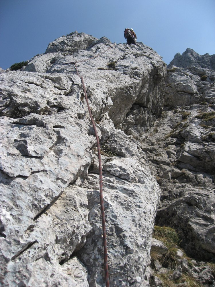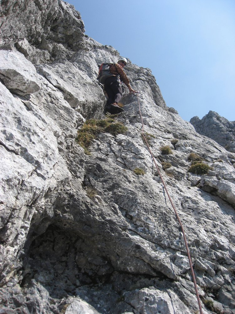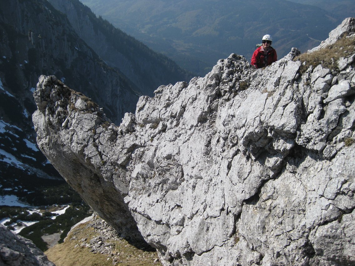 Schöne, anregende Gratkletterei in überraschend gutem Kalkfels, an der Nordostseite des Höllengebirge-Plateaus.