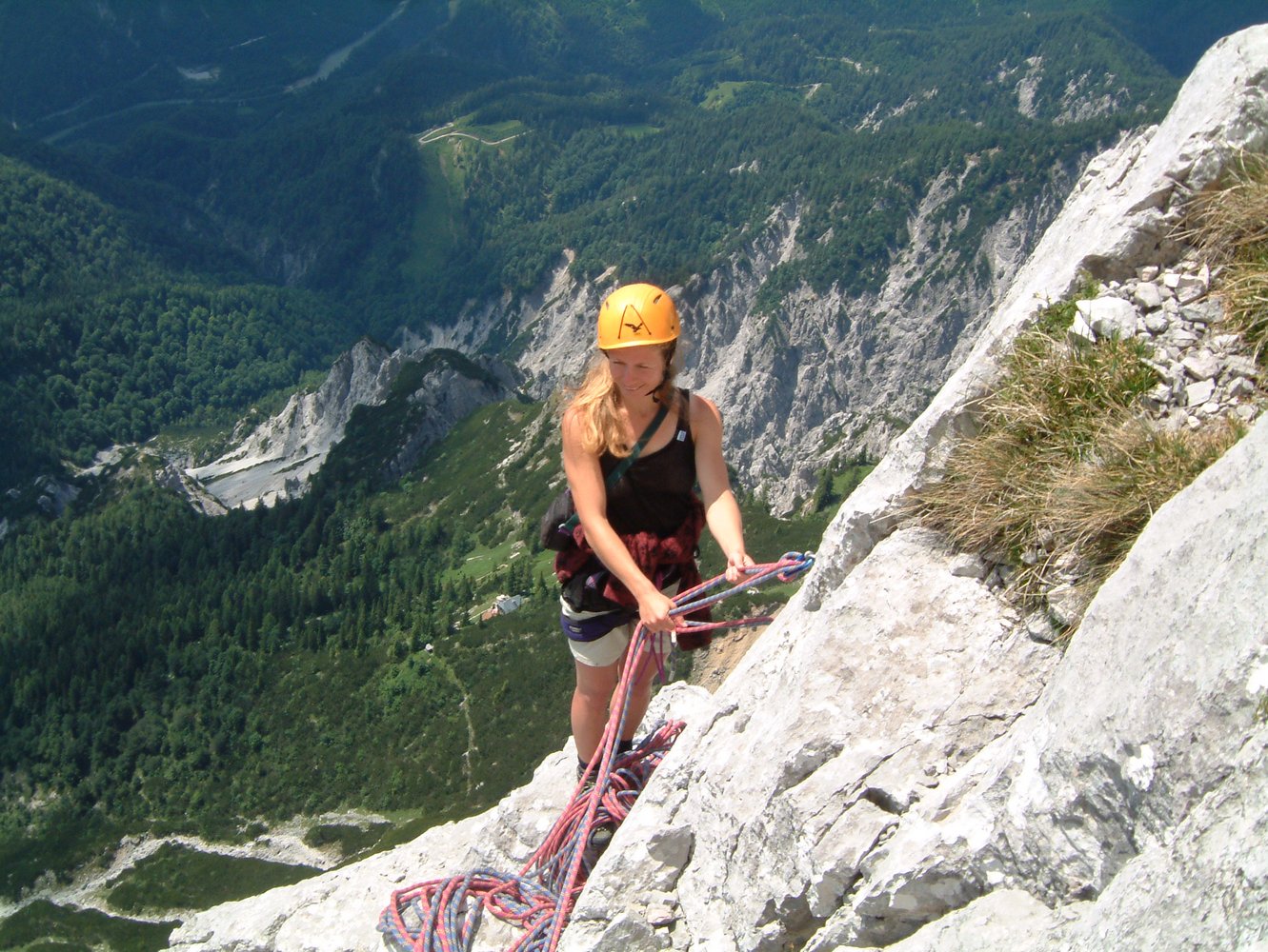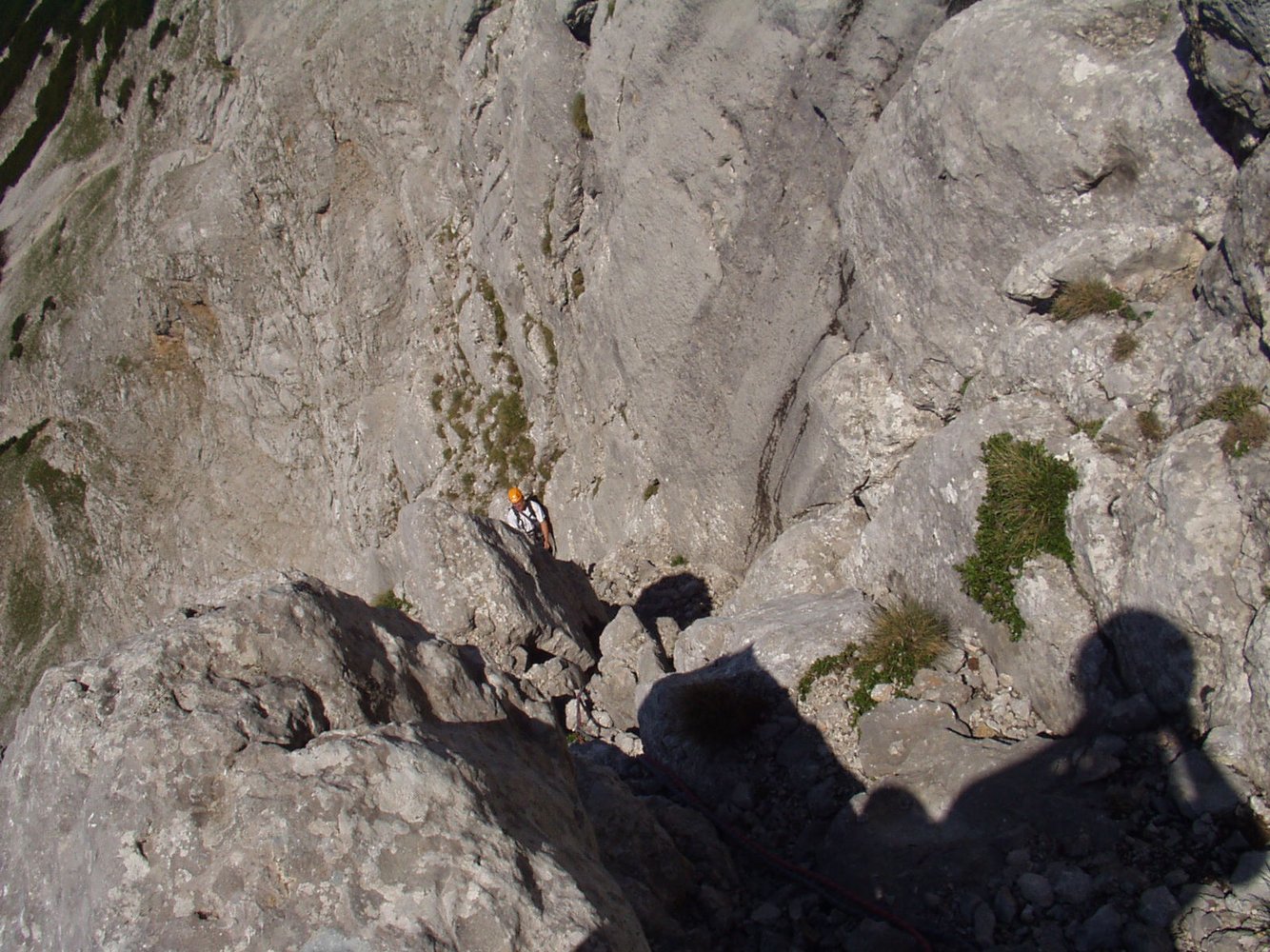 Beim Zustieg kurz vor dem Sattel herrscht extreme Steinschlaggefahr vom Südwandsteig!