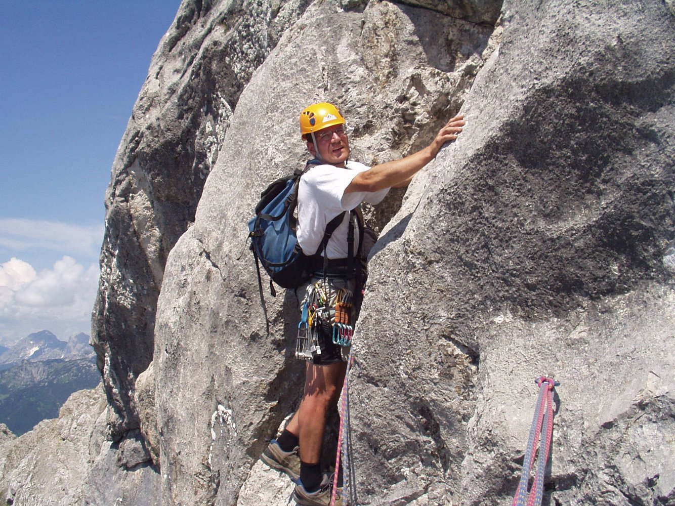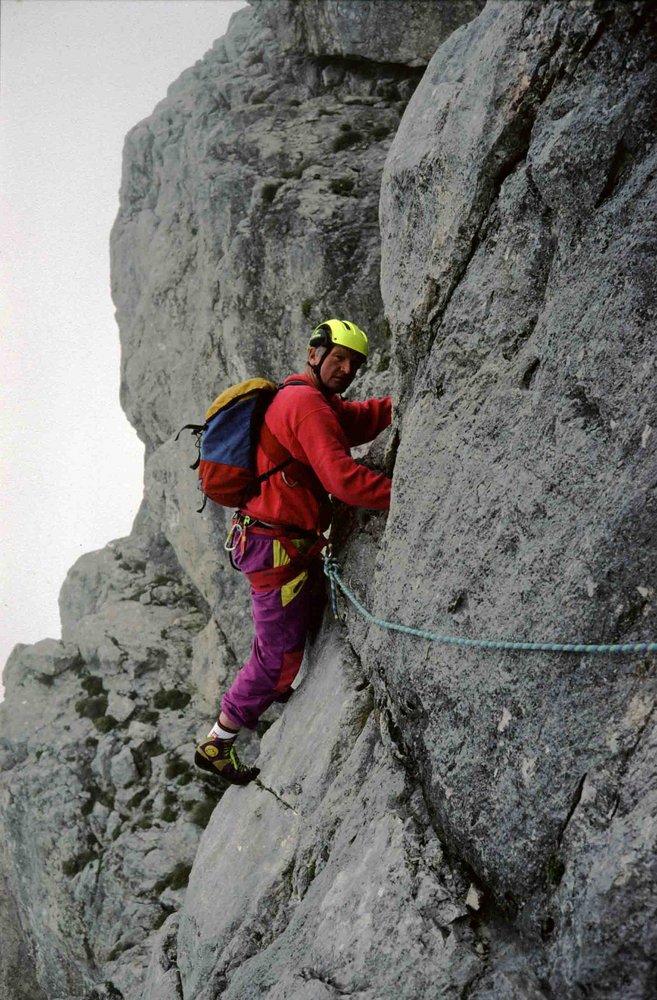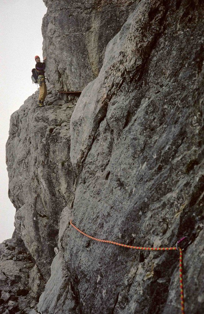 Klassischer, alpiner Gratanstieg der zu Unrecht hinsichtlich Beliebtheit hinter dem Westgrat angesiedelt ist. Der Fels ist durchaus gut und die anregende Wand- u. Gratkletterei wird nur durch zwei Terrassen-Bänder gestört.