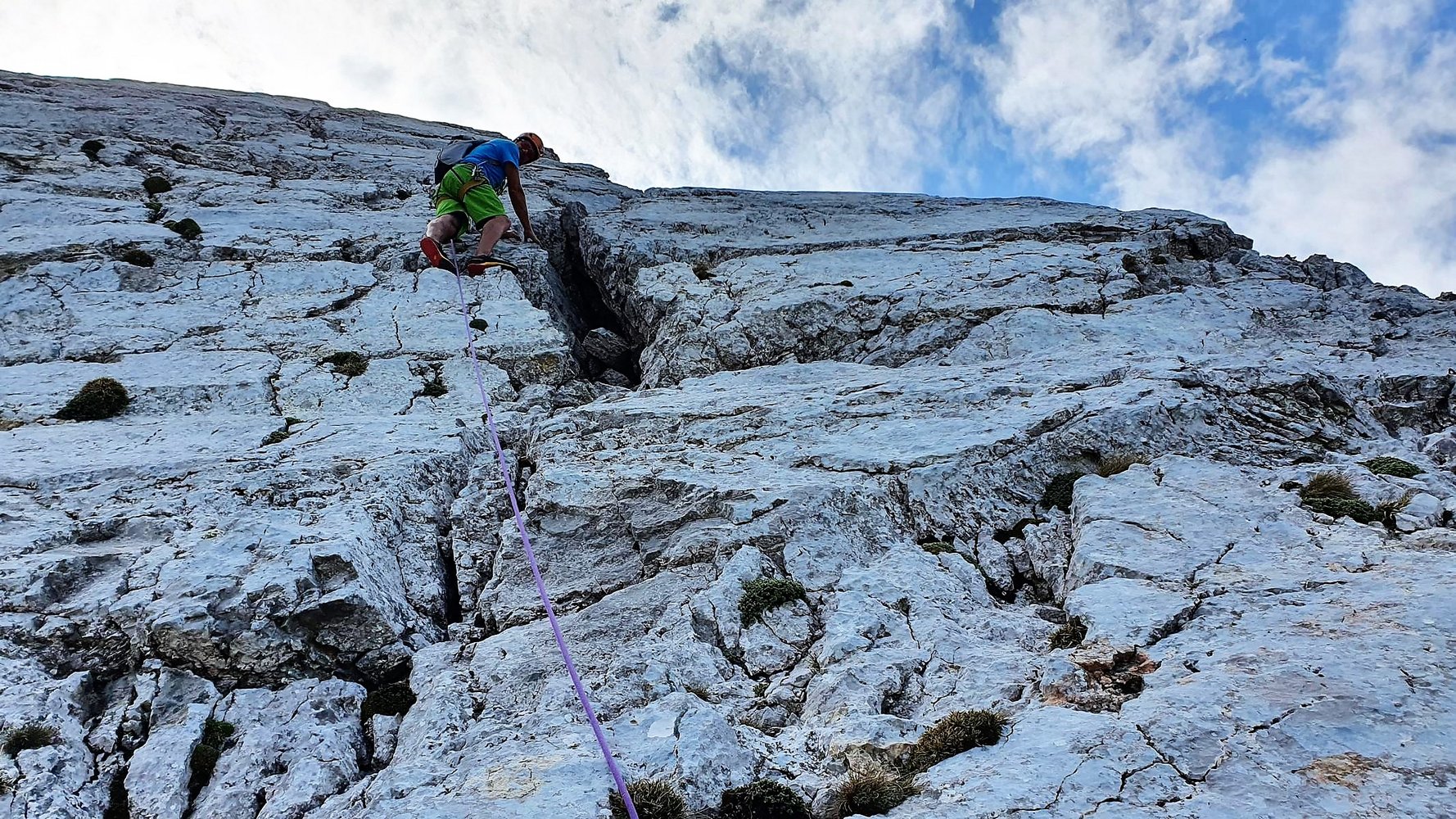 Die Tour ist für diesen Schwierigkeitsgrad gut mit Bolts, die vor allem bei der Wegfindung recht gut helfen abgesichert - aber keine Plaisirabstände. Friends und Keile können zusätzlich gut gelegt werden. Das gesamte Unternehmen vom Tal aus ist recht fordernd - vor allem sollte man die Wettersituation genau beachten!