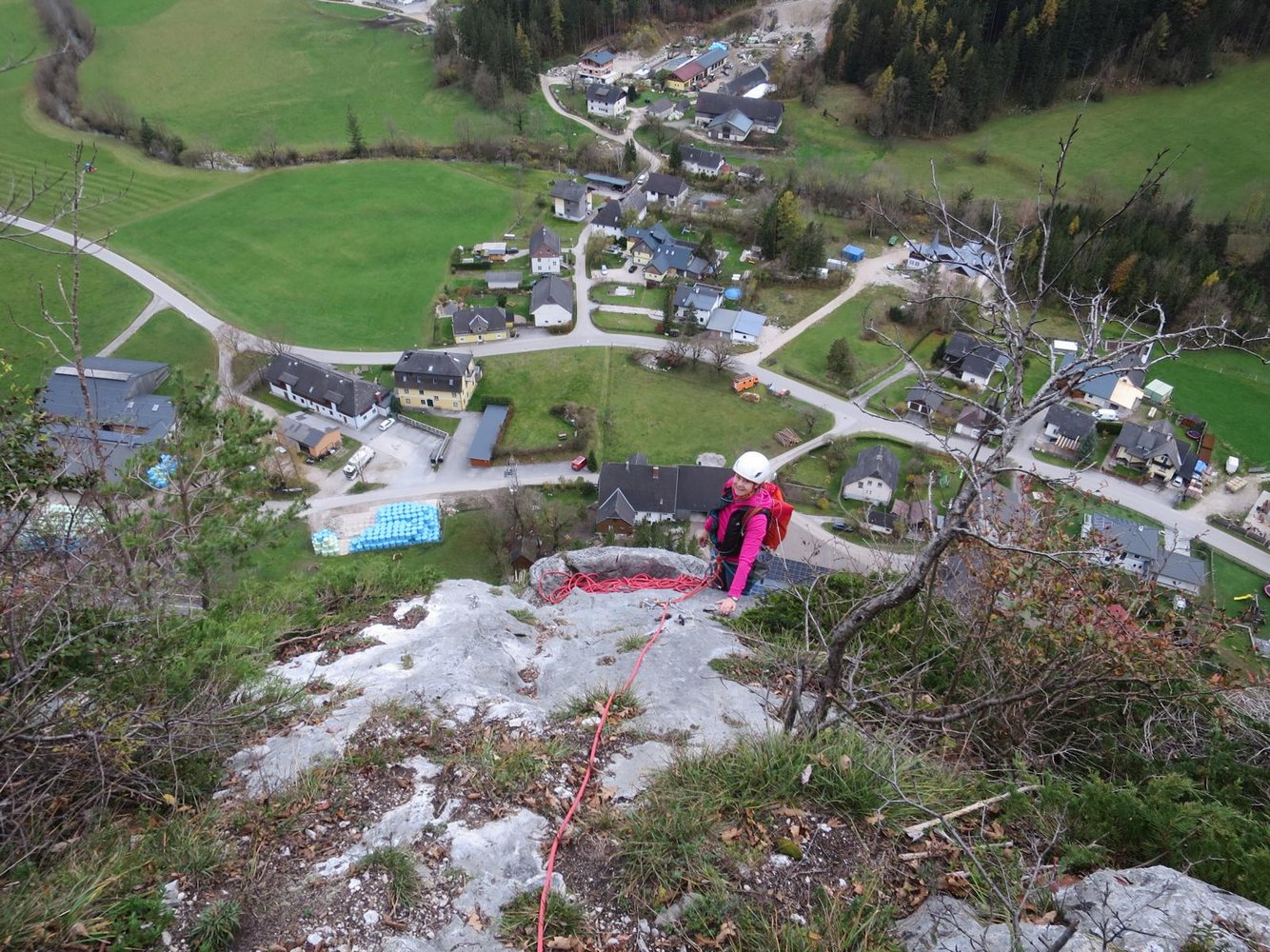 Auf der Ennstall Bundesstraße (B146) von Liezen Richtung Westen nach Stainach. Hier nach Bad Aussee abzweigen und nach wenigen 100 Metern links zur Ortschaft Untergrimming abzweigen. Gleich nach der Ortseinfahrt rechts (Tafel 'Klettergarten) unter der Hauptstraße durch zum Parkplatz.