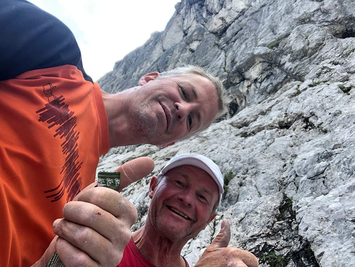 Klaus Zehetner und Florian Burggraf, am 09.08.2020 - im Vorstieg ohne vorheriges Erkunden.