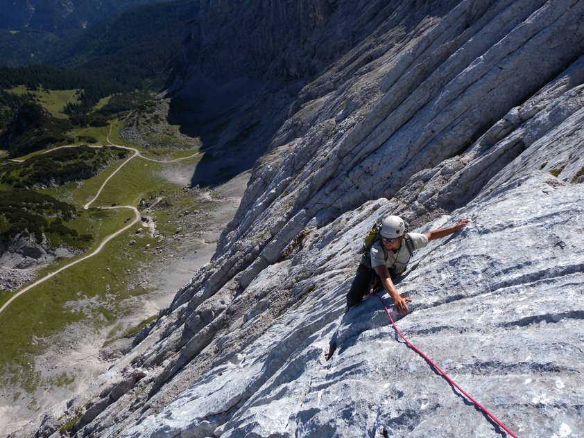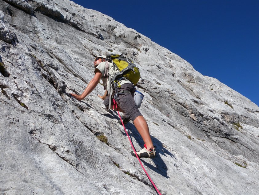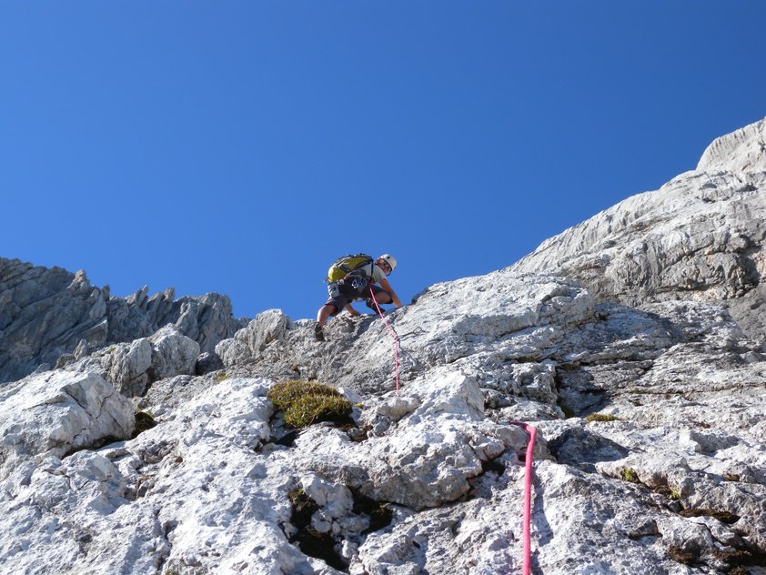 Für eine Alpinroute recht gut gesichert - aber keine Plaisirkletterei.