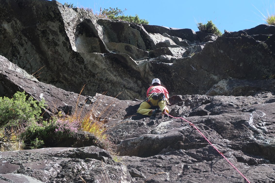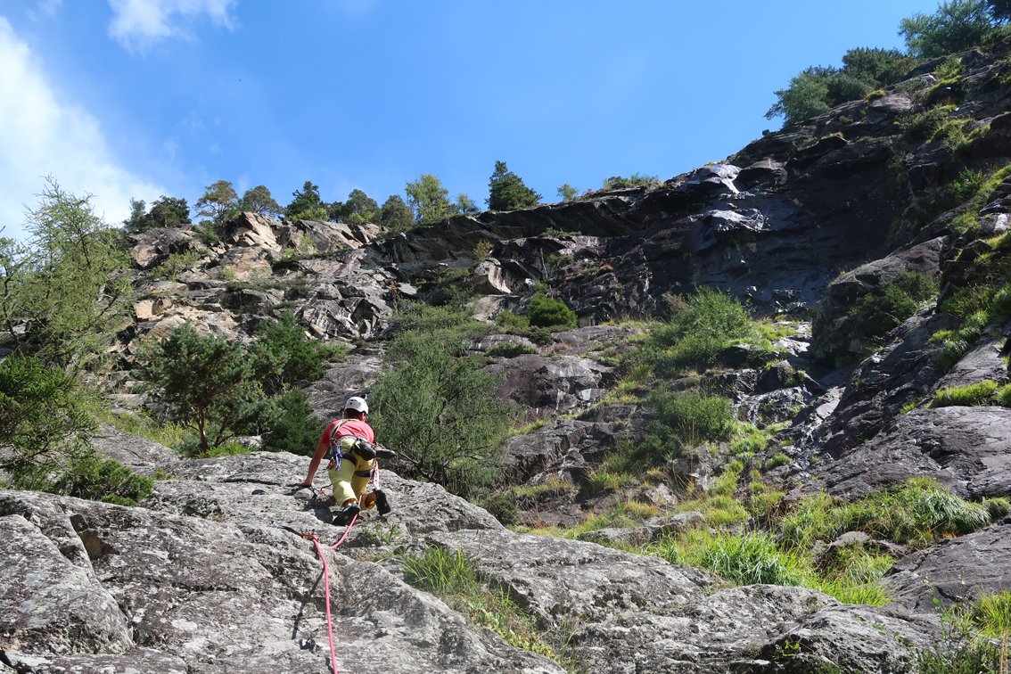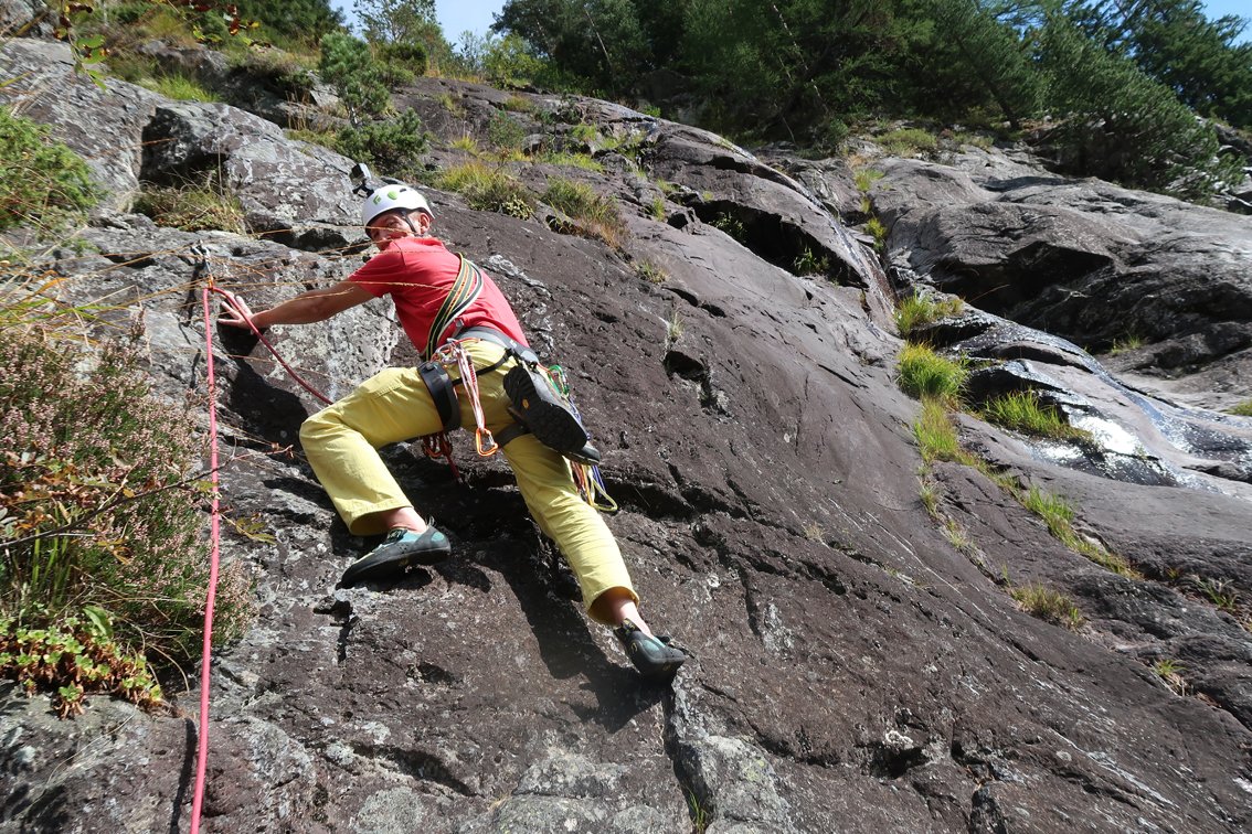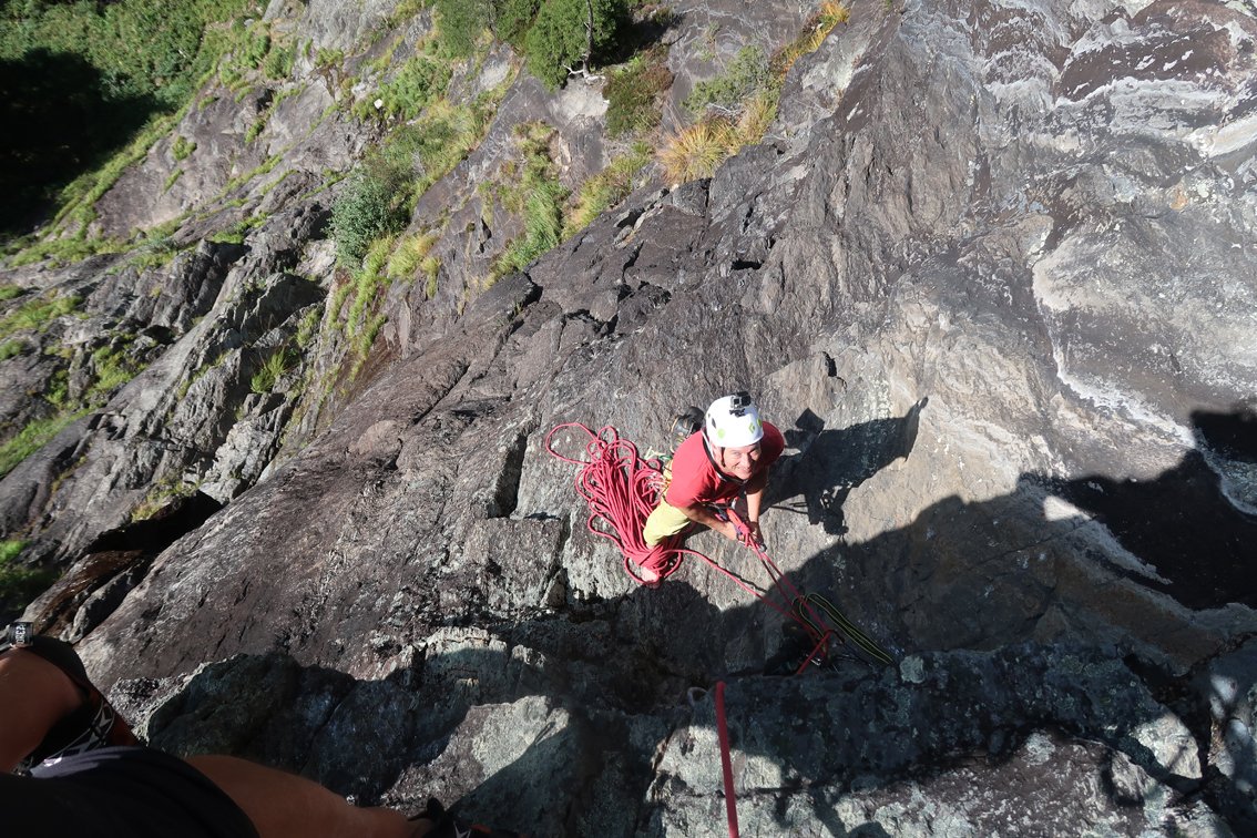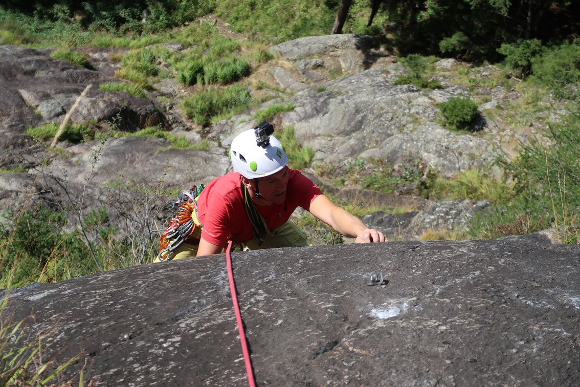 Schöne, in der Mitte etwas schwerere Klettertour. Das kleine Dach in der vorletzten Seillänge kann man technisch sehr gut bewältigen, das ergibt eine ansprechende 6er Tour. Ein exzellenter Mix aus Platten und steilen, griffigen Passagen. Caipirinha ist bis auf die Dachpassage der links verlaufenden Route Südwind sehr ähnlich.