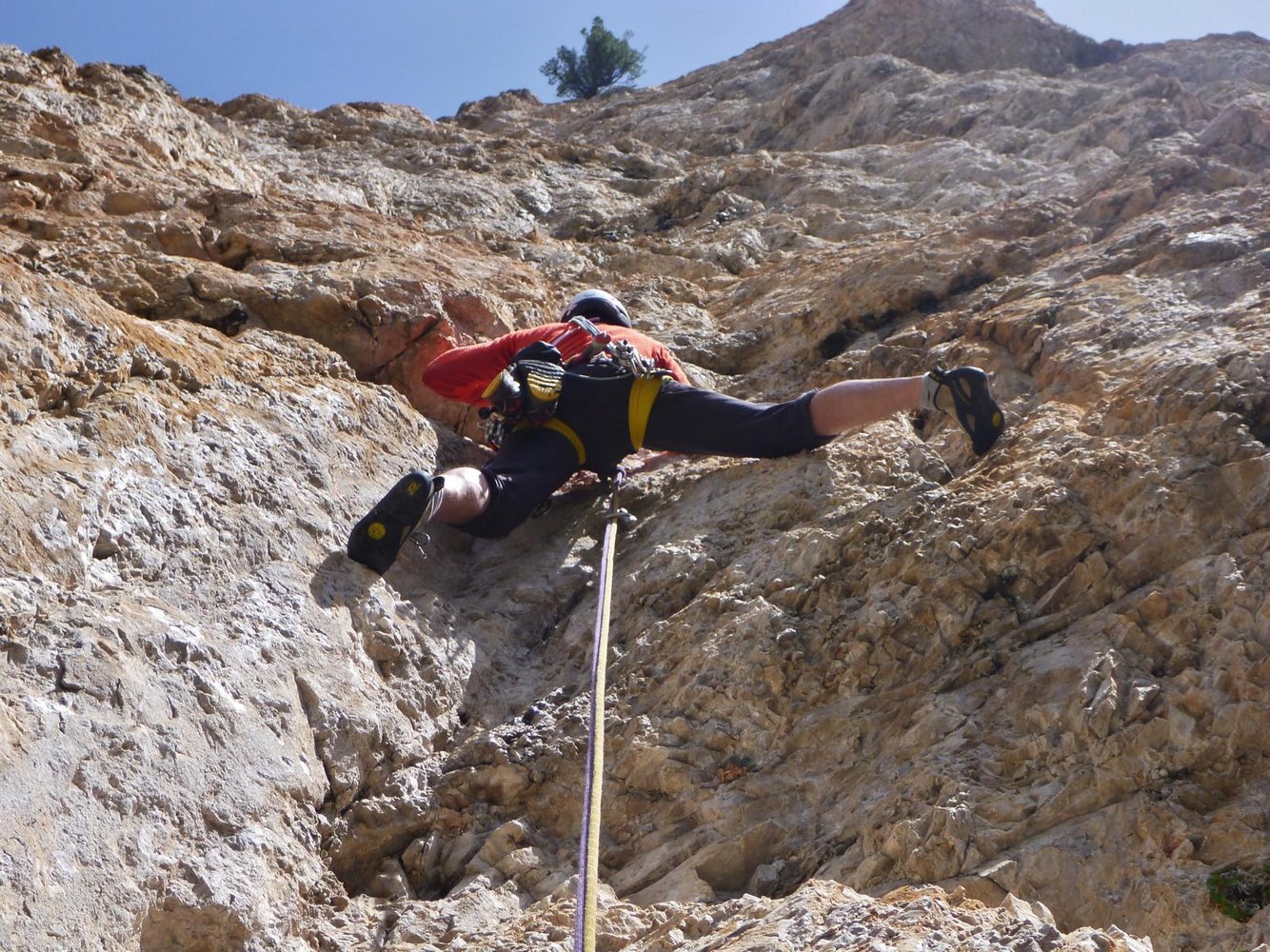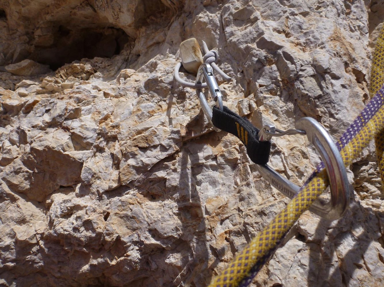 Standplätze an gebohrte Ringe bzw. Haken, sowie ausreichend Zwischenhaken vorhanden. Für zusätzliche Absicherung ist ein Satz Cams erforderlich.