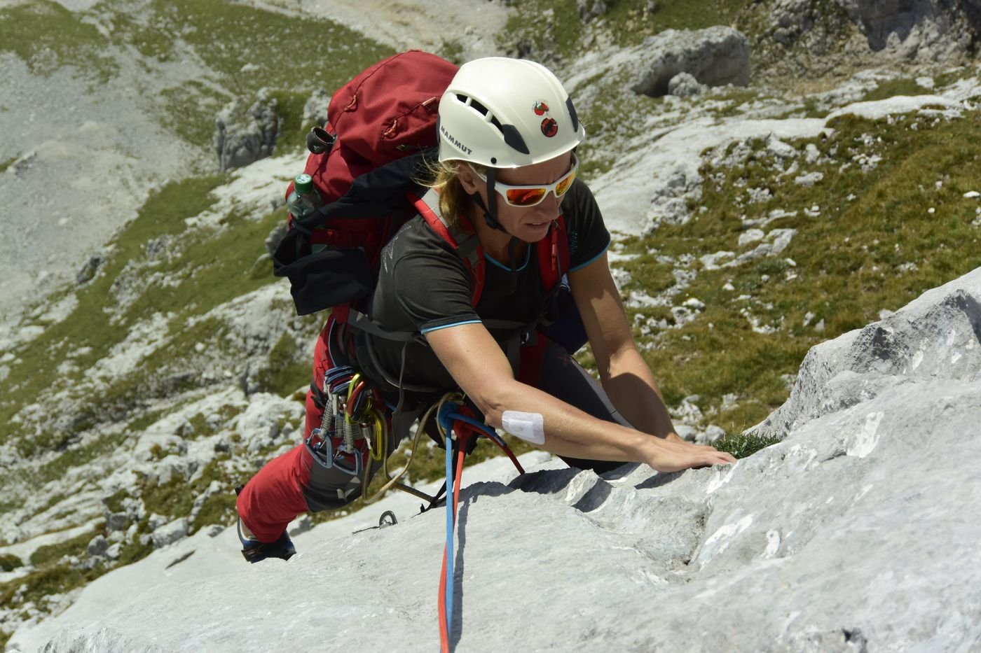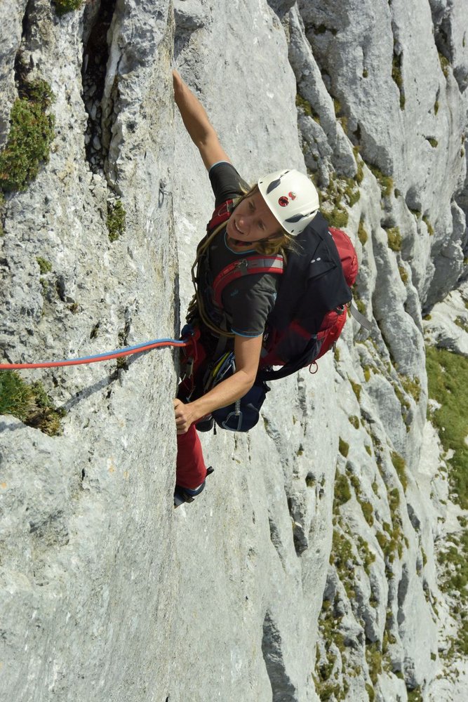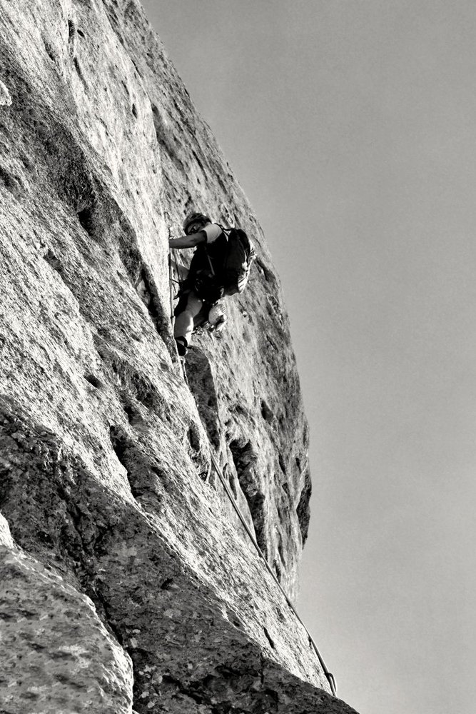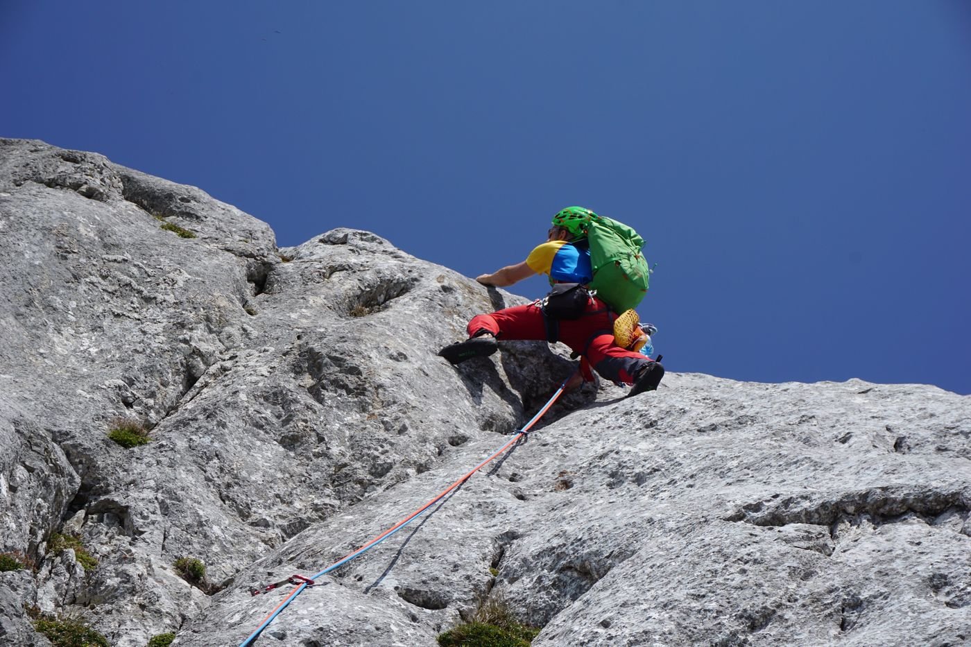 Steile, sehr ausgesetzte alpine Sportkletterei mit sehr guter Absicherung (Expansionsbohrhaken)