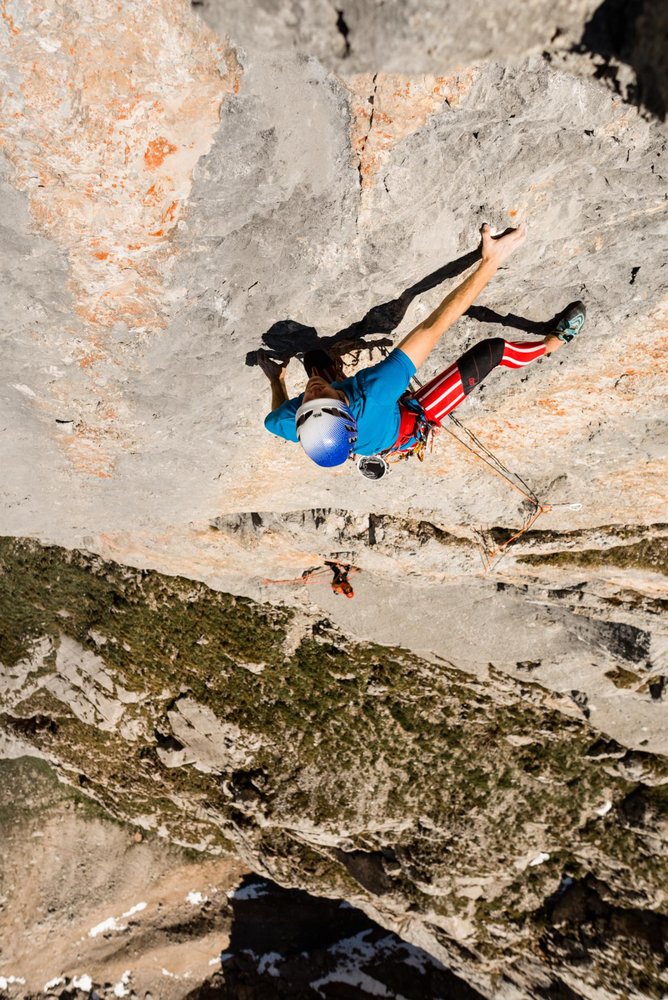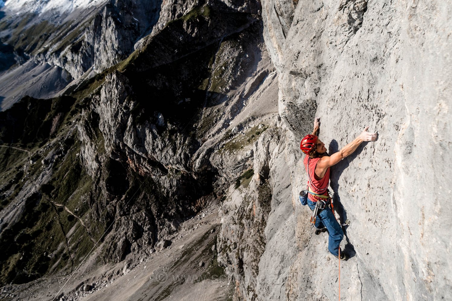Route ist zwar nicht gefährlich, aber durchaus psychisch anspruchsvoll. Alle Stellen sind zwingend zu kltettern, insbesondere die Crux. In den SL 1, 4, 6 teilweise weite Runouts im oberen 7ten Grad.