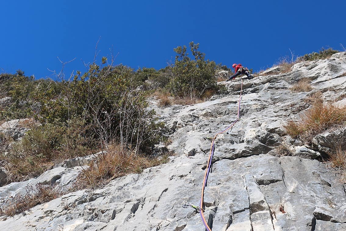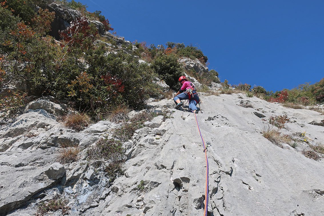Recht gut mit Bohrhaken abgesichert, Klemmkeile braucht man keine.