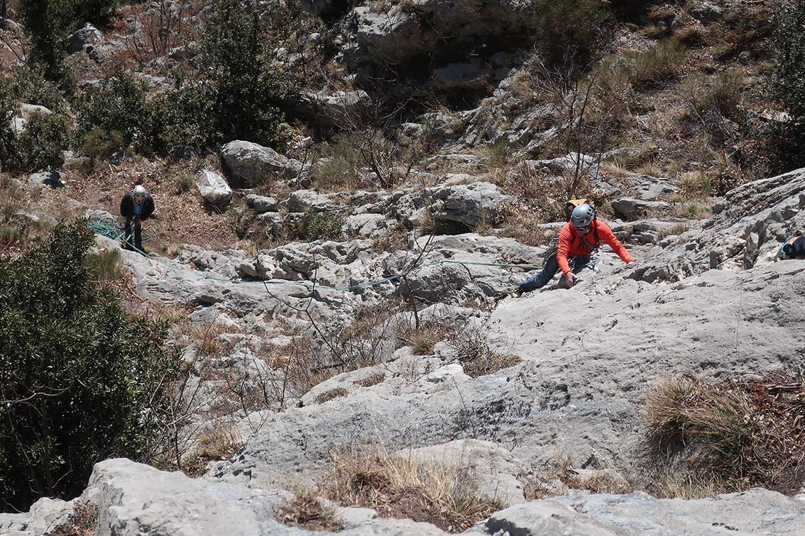 Man muss abseilen und somit auch wieder hinaufklettern - zumindest der Vorsteiger sollte den angegebenen Schwierigkeitsgrad sicher beherrschen.