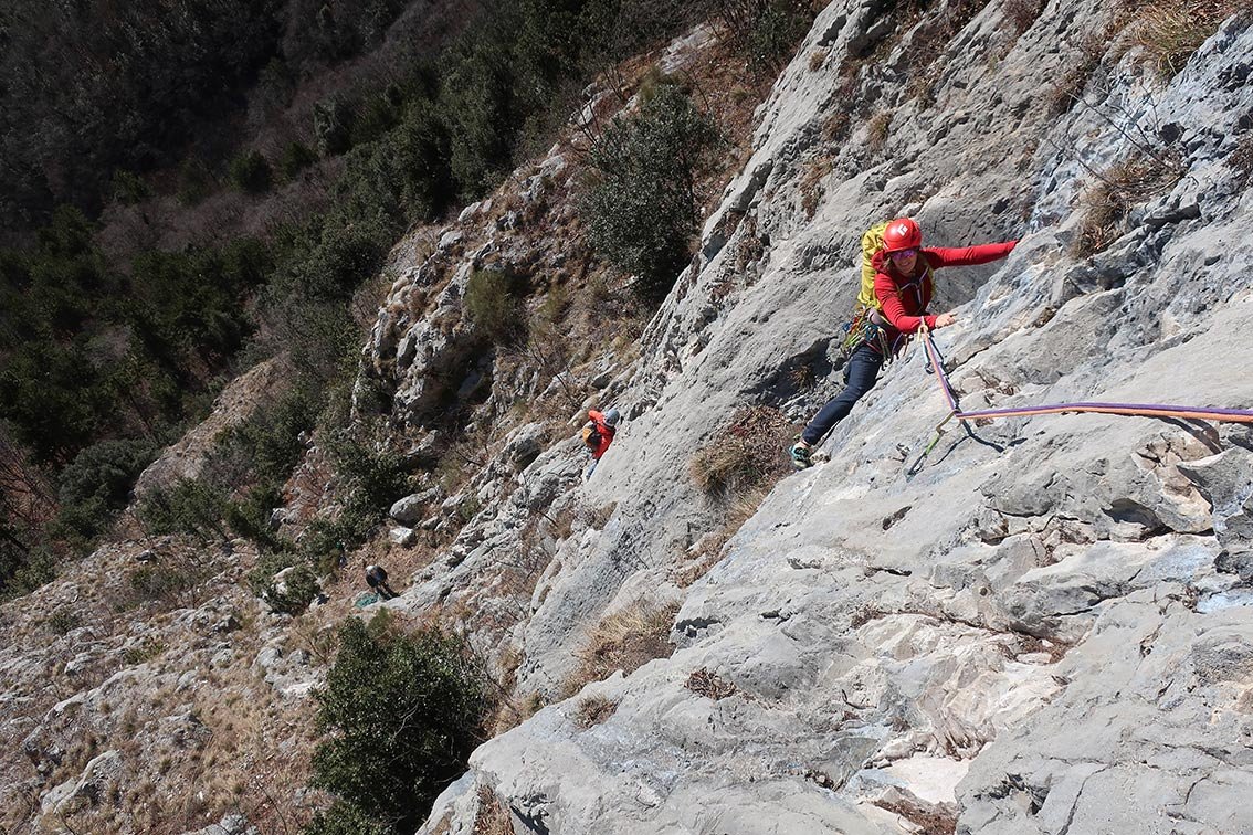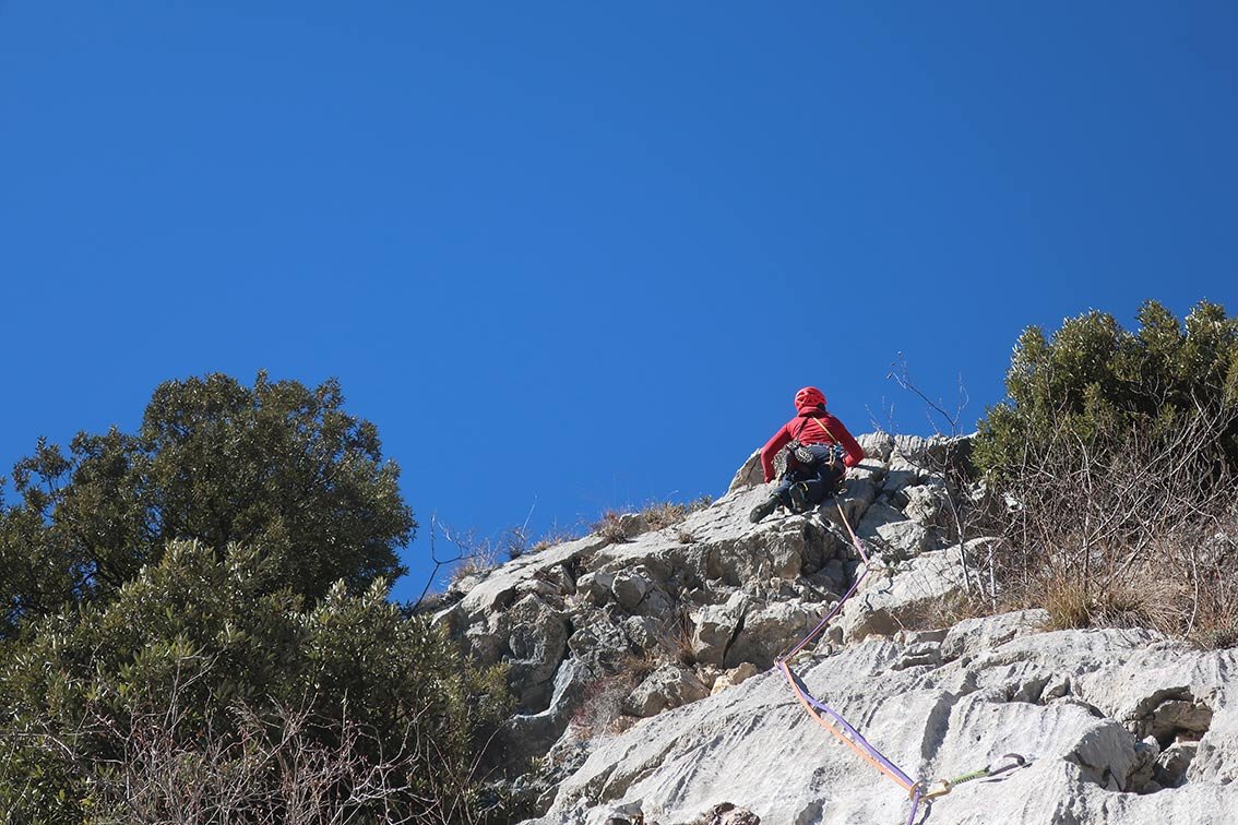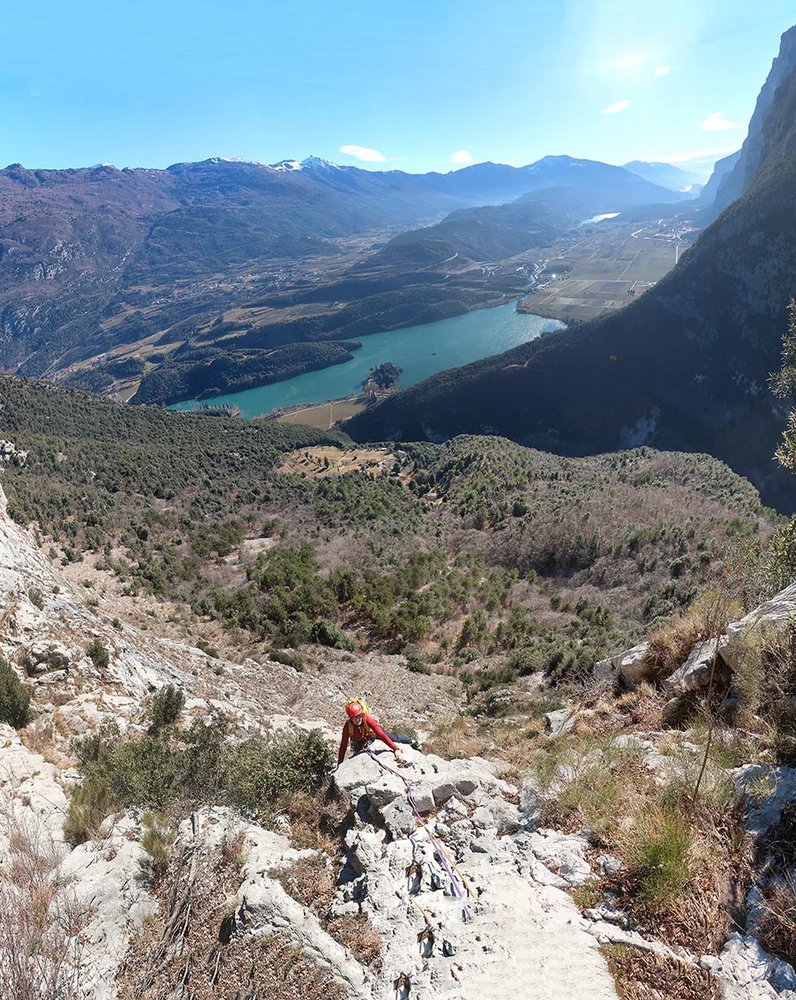 Die Via Cobra ist eine anregende, sehr homogene Kletterroute an dem steilen Felsabbruch Croz delle Mirandole. Senkrechte Wandkletterei wechselt mit griffigen Platten ab, die Schlüsselpassage ist ein Aufsteher an einem kleinen Bauch. Wegen der guten Bohrhakenabsicherung ist die Route recht gut besucht, was aber wegen der Kettenstände nicht wirklich ein Problem ist. Wer tolle Kletterei mit etwas Verdon-Feeling hoch oben im Sarcatal sucht, ist dort richtig - man hat einen tollen Ausblick in die Brenta und südlich bis zum Gardasee.
