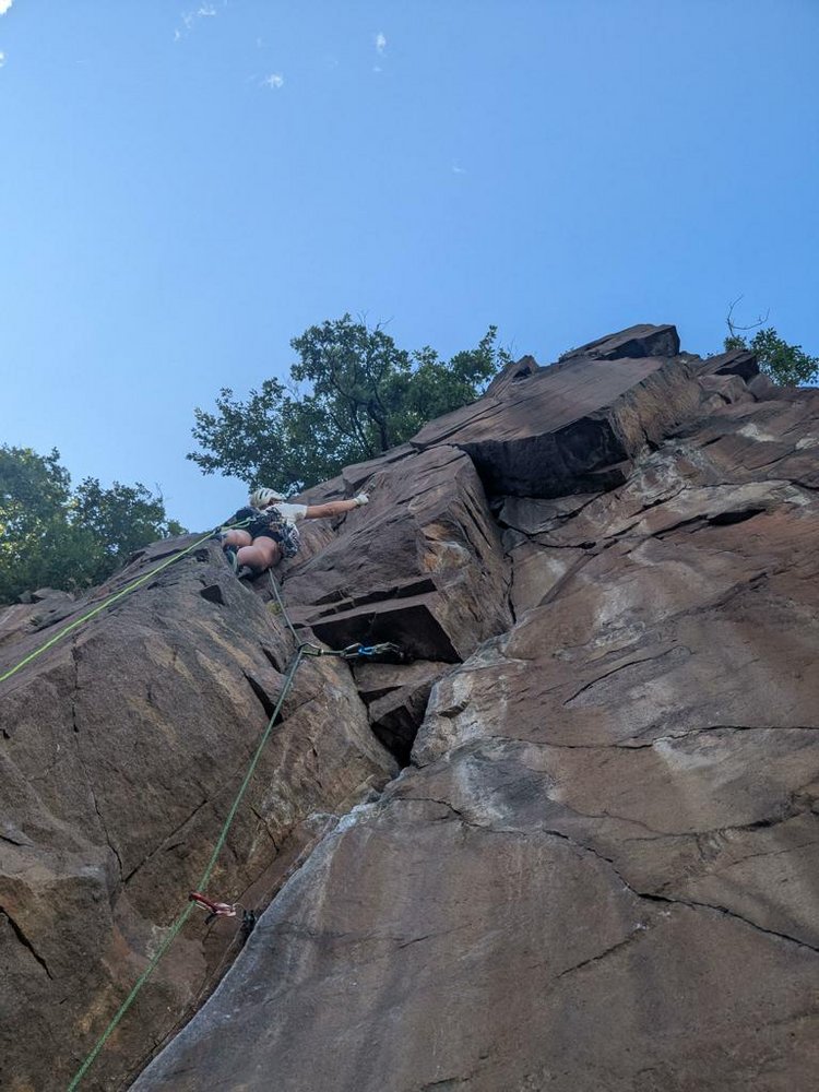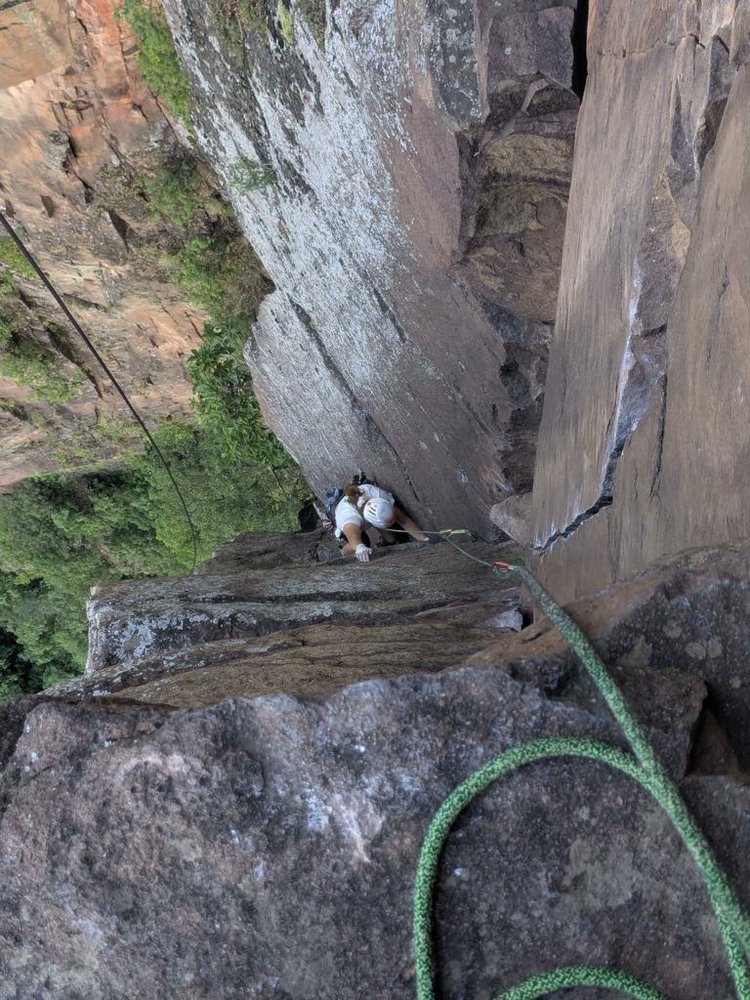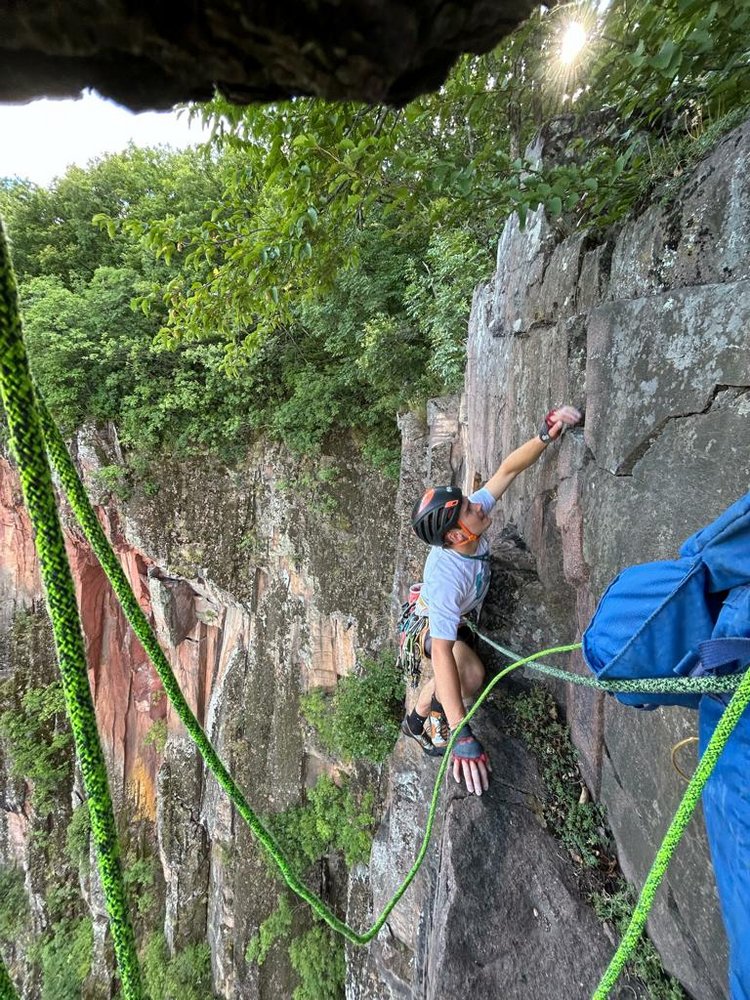 Achtung beim Abseilen - wenn man nur die oberen 4 SL klettern will, nicht zu weit abseilen. Immer die rechten Stände verwenden - links die Stände sind von einer anderen Route.