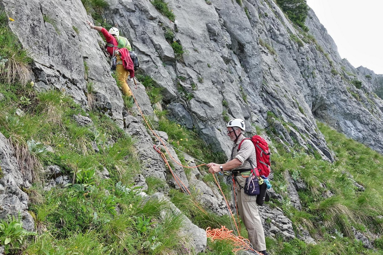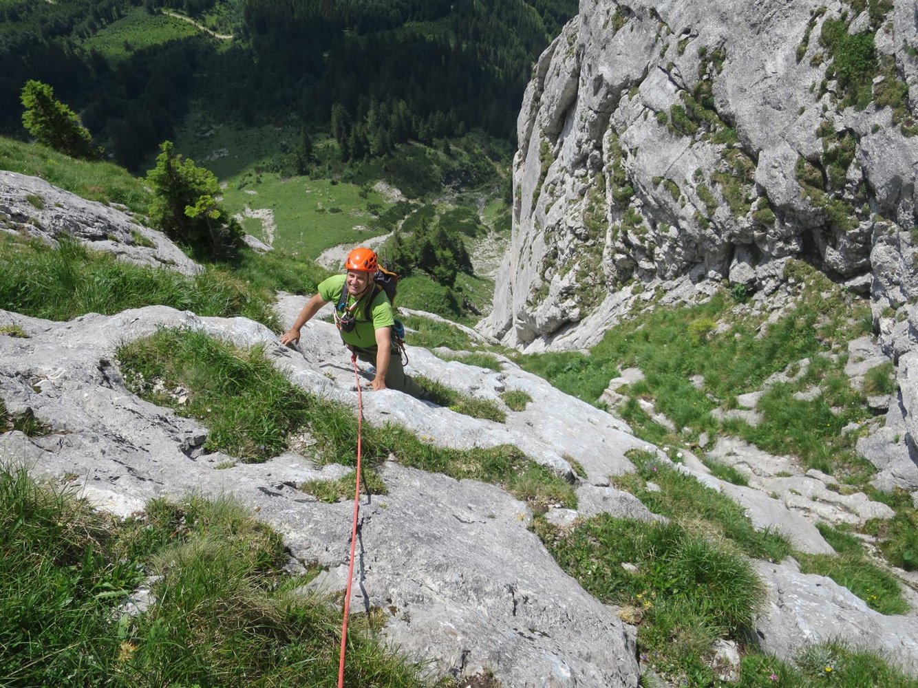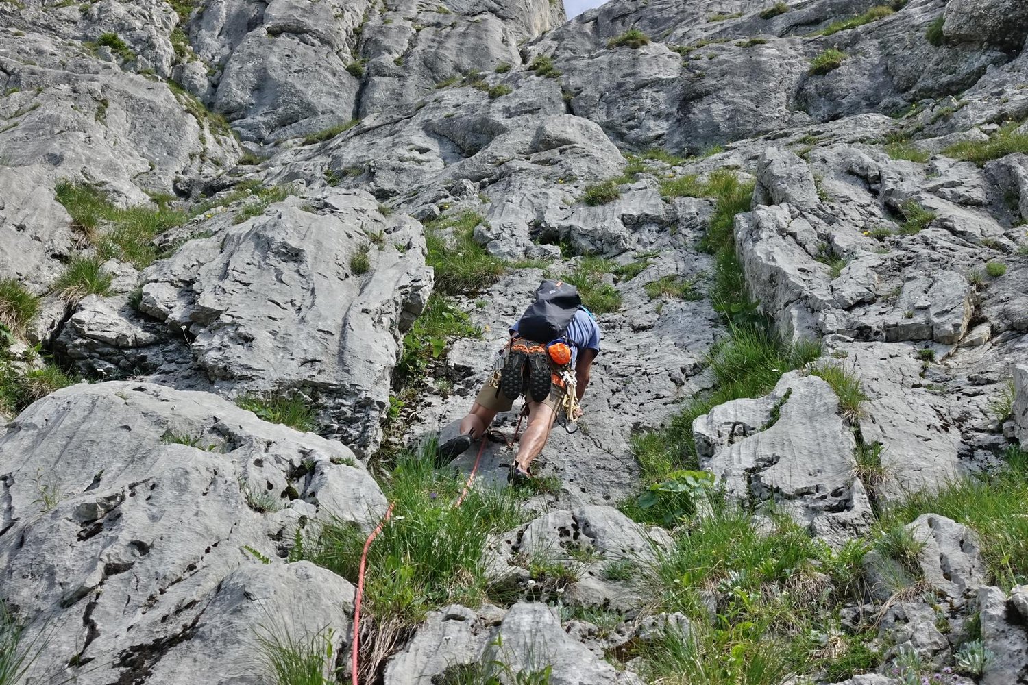 Bei Nässe sind die grasigen Zustiegslängen gefährlich!