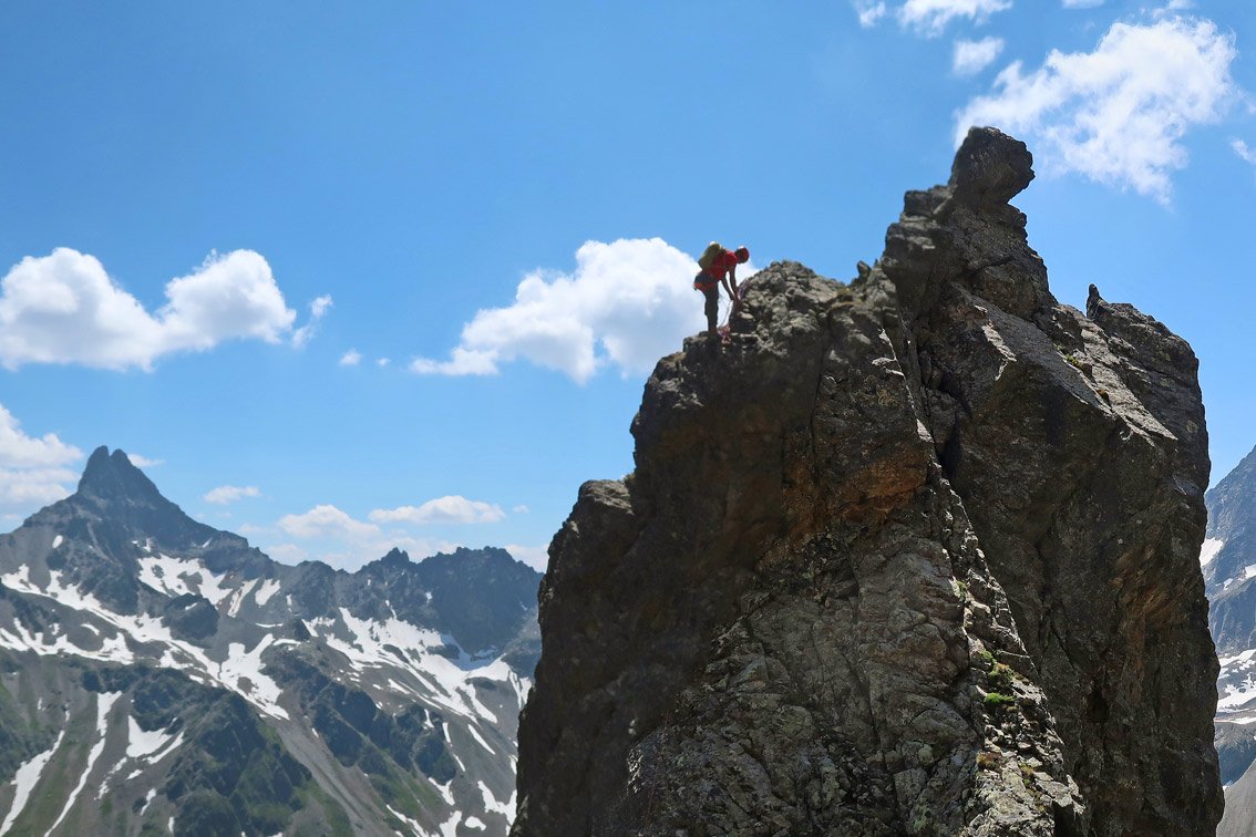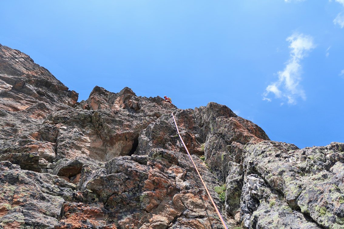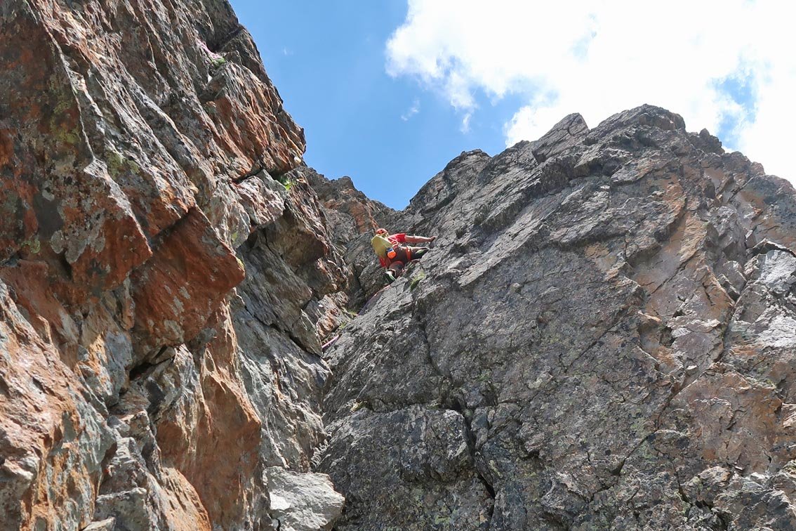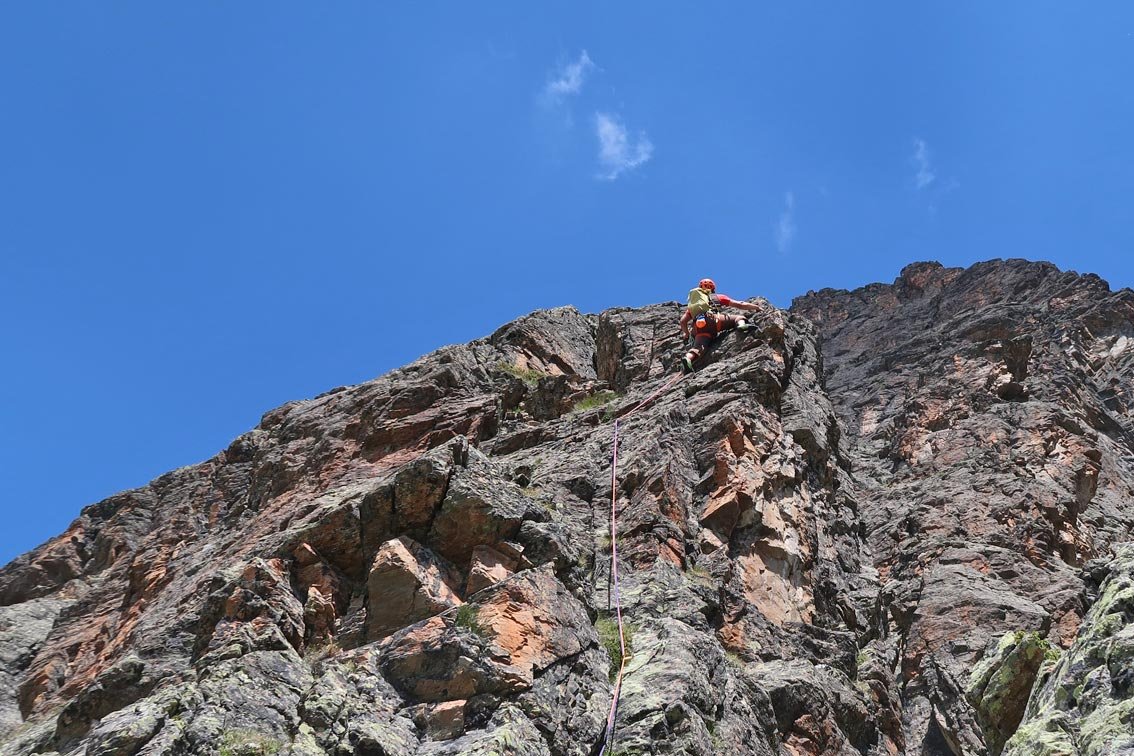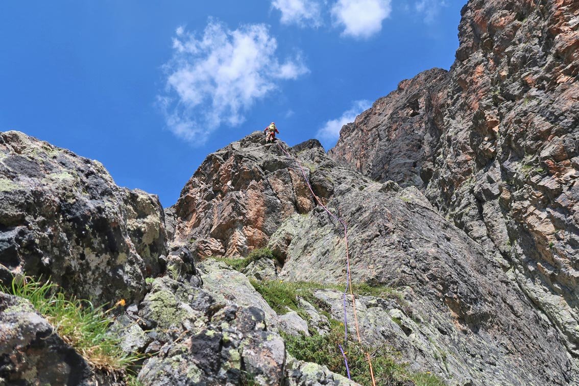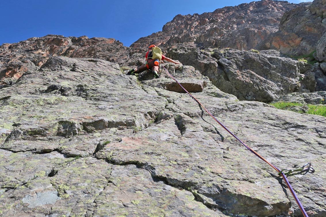 Wirklich schöne Mehrseillängenroute im rechten Teil der Südwand der Östlichen Faselfadspitze. Die Route hat drei mittelschwere Seillängen, die restliche Kletterei ist leichter und folgt einem markanten, breiten Grat.