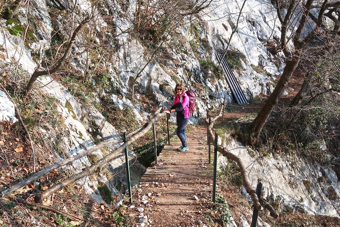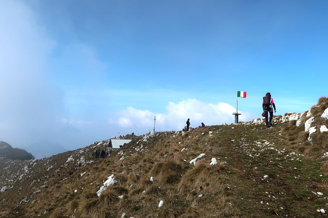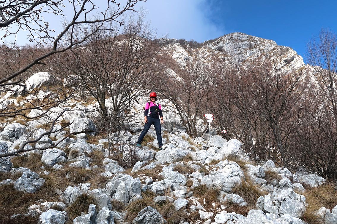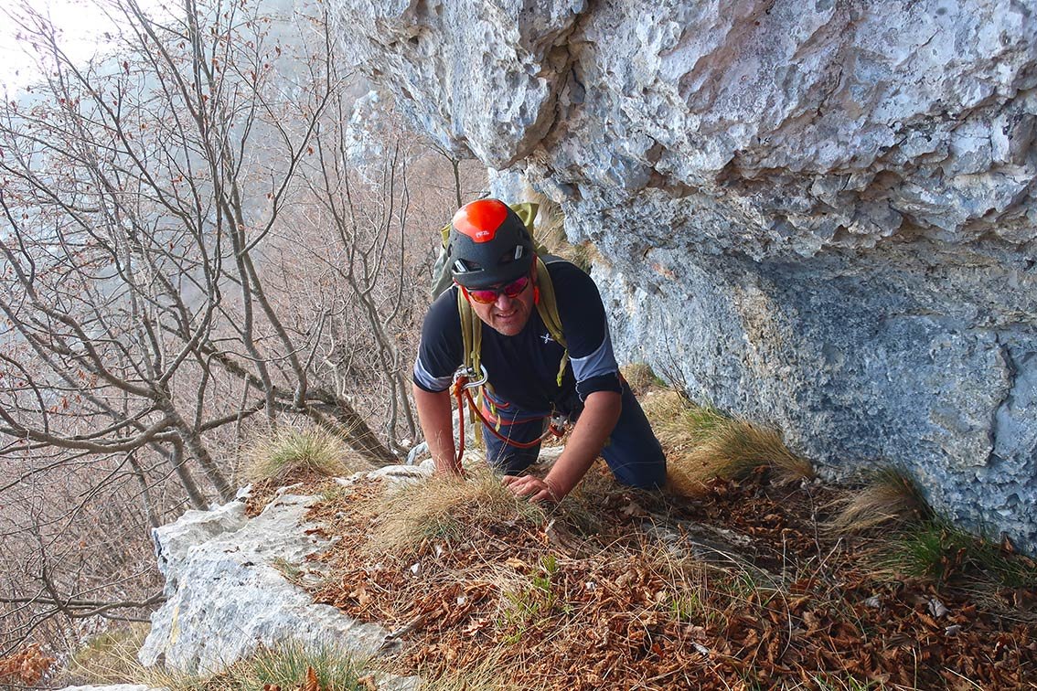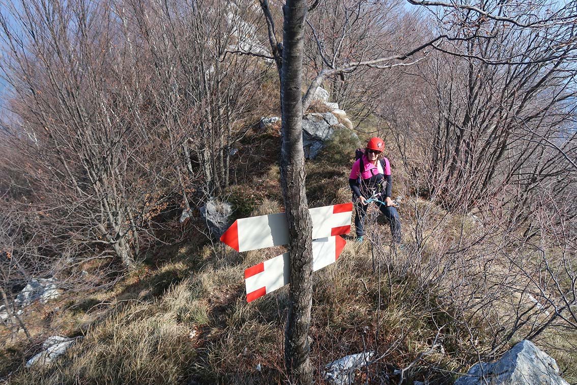 Wer beim Cresta Sud-Est schon bis zur Abzweigung auf 1330 m leichte Probleme hat, sollte NICHT zum Sentiero alpinistico Tre Amici Finale queren, sondern besser den leichten Cresta Sud-Est bis zum Gipfel weiter aufsteigen!