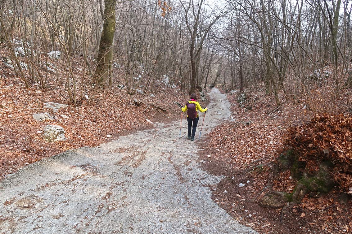Vom Gipfel auf dem Wanderweg nach Westen bis in einen Sattel auf 1469 m. Dort steil nach Süden hinunter - vorbei am Gehöft Malga Valle - immer auf dem markierten Weg bis man auf einen sehr steilen Fahrweg trifft. Auf diesem (immer noch markiert) hinunter bis zur Straße oberhalb der Casa Ortello di sotto und auf dieser nach links zurück zur Parkmöglichkeit.