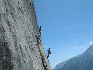 Neben der Route Happy End zieht die Route Da Capo fast eine Spur elleganter durch den Plattenpanzer hinter der Wemeteigenalm. Nach zwei Längen zum Einklettern wird die Sache oben etwas steiler, es tauchen aber meist unverhoffte Griffe auf! Die Route gehört sicher zu den besten Linien der Steinplatte. Großes Lob an Adi Stocker und seinen Gefährten !