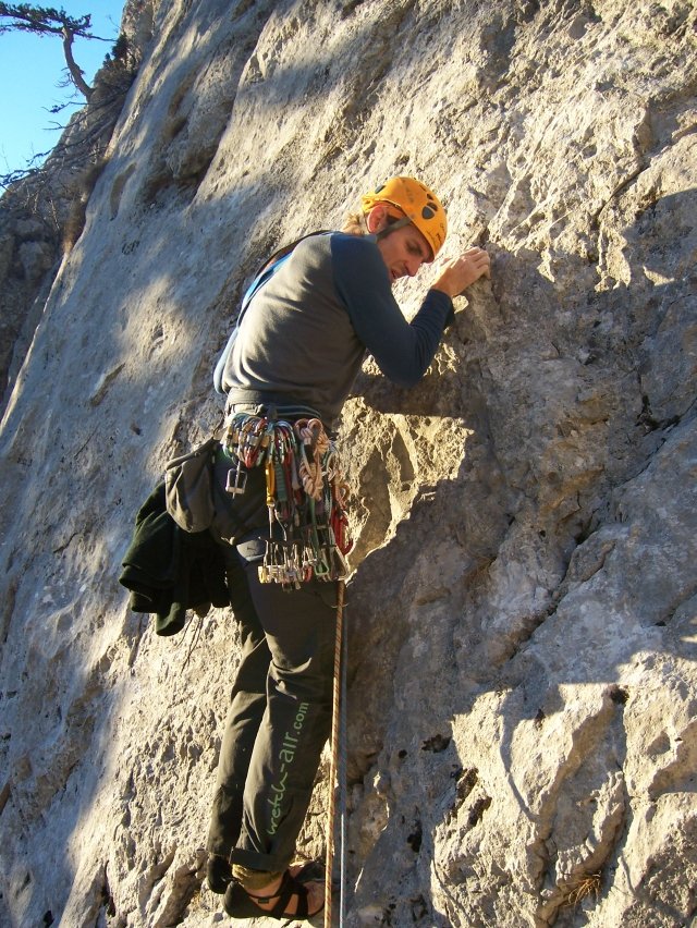Die Tour ist sportklettermaessig eingerichtet aber KEIN KLETTERGARTEN !!! Das anbringen von Friends sollte auch klappen, inbes. in der 11 SL.