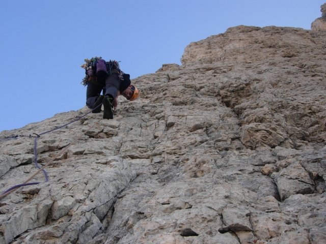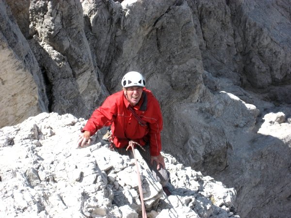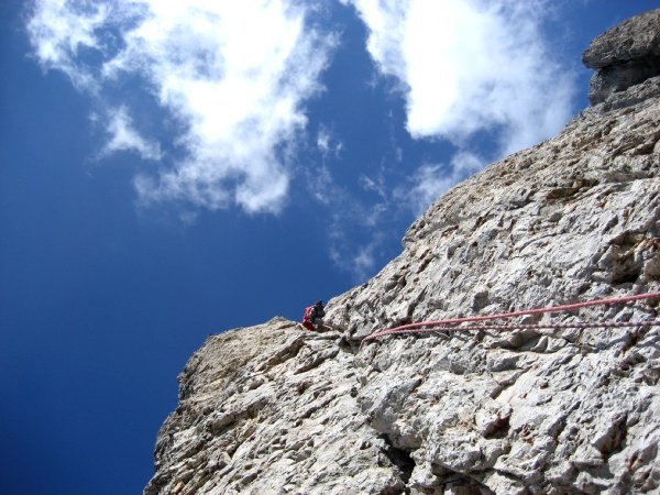 Der Dolomitenklassiker schlecht hin - sehr schöne und ausgesetzte Kantenkletterei mit alpiner Absicherung. Die Stände sind saniert, Zwischensicherungen gut, aber geschlagene Normalhaken, ein wenig abgespeckt.