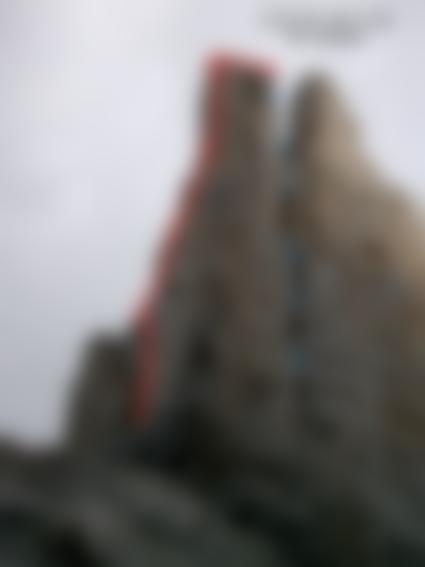 Nicht zu verfehlen. Immer ein wenig rechts der Kante klettern. Ansonsten siehe Topo.