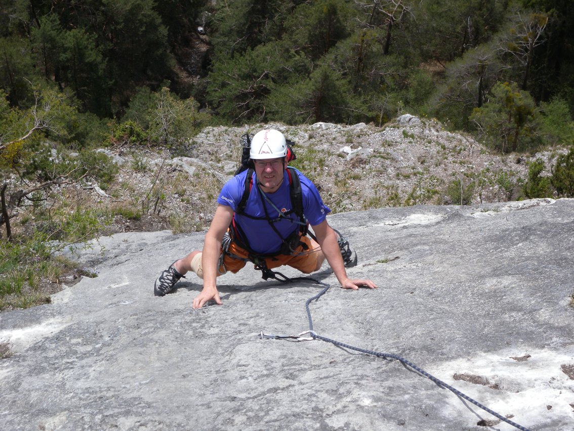 10 Expressschlingen, 1 x 60 m Einfachseil und Helm.