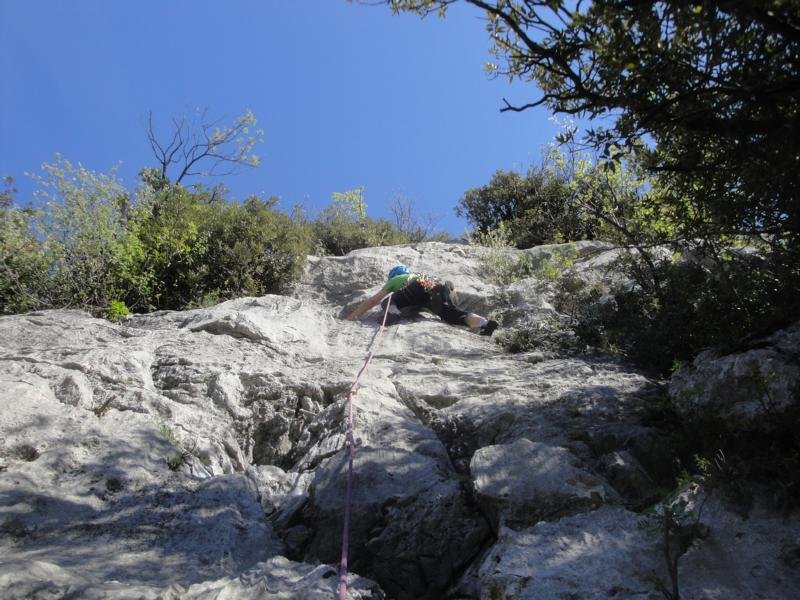 Wirklich gute Tour, die ein ganz anderes Kletterfeeling als die Routen im Sarcatal vermittelt - man klettert immer oberhalb des Gardasees. Die Route ist ähnlich wie die Grill/Kluckner Routen nur mit Normalhaken und Sanduhren gesichert. Man sollte auf jeden Fall ein kleines Keilsortiment mitnehmen, den nur so kann man die tollen Ausblicke auf den Gardasee auch wirklich entspannt genießen. Wer eine der vielen Plaisirtouren (Caino e Abele bietet sich am besten an) als Zustieg wählt, kommt auf ein schönen, langen Mehrseillängentag.