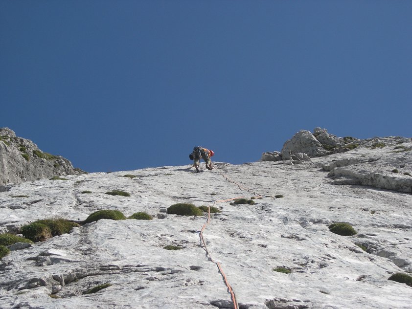 Die Tour ist stark frequentiert, deshalb staut es sich oft (meist gleich in den ersten beiden Seillängen).