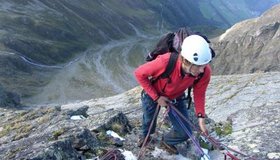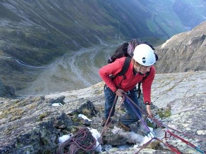 Je nach Klettergeschwindigkeit eventuell Biwakausrüstung. Bei unserer Begehung war warme Kleidung erforderlich (weil schattiges Ambiente)